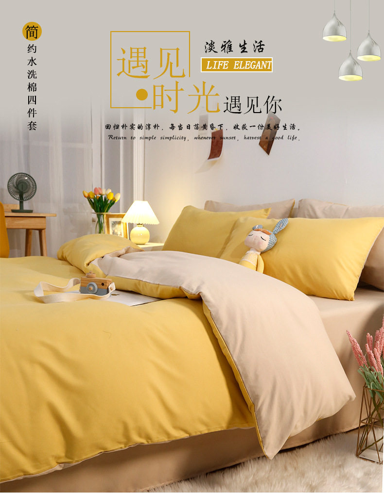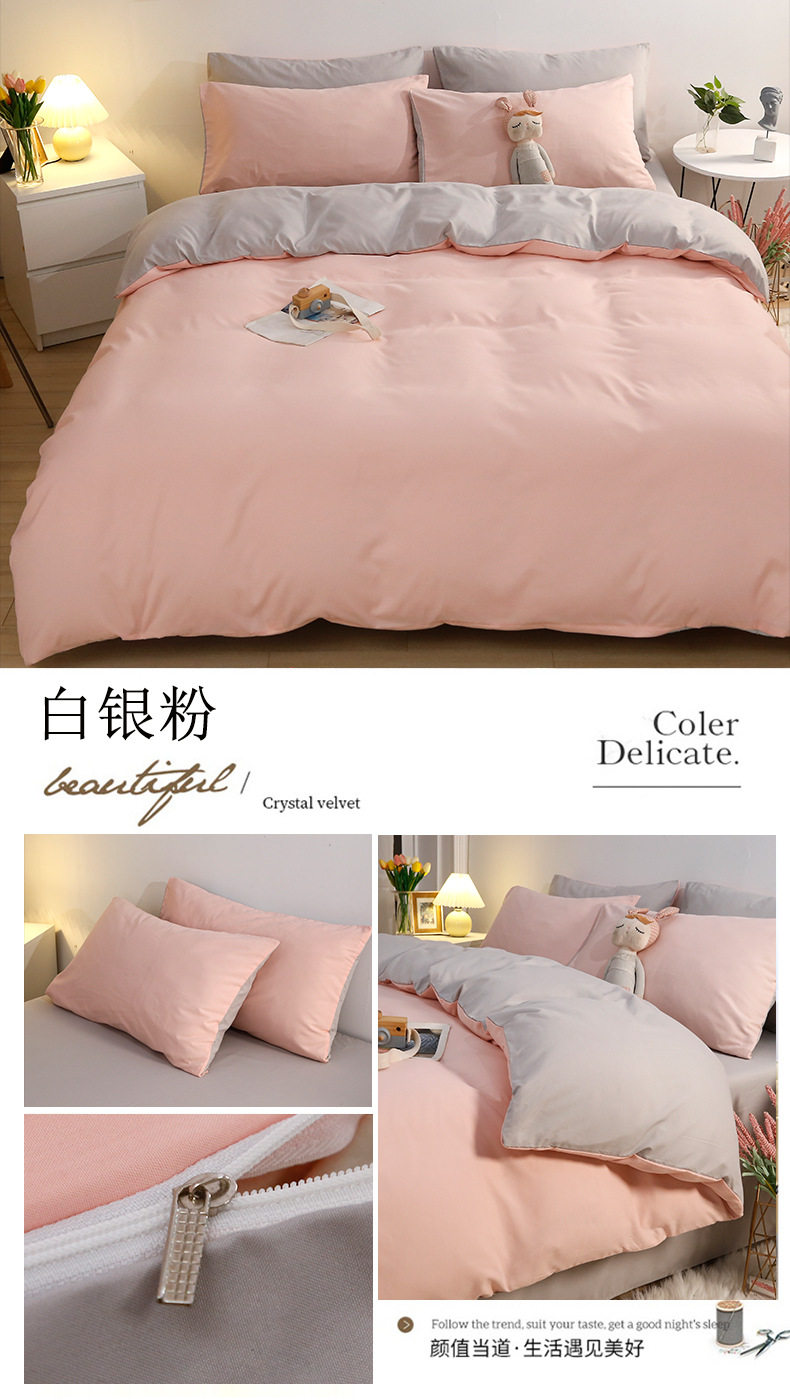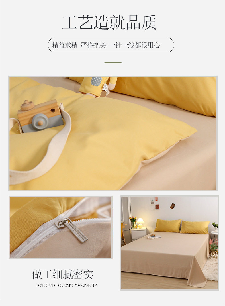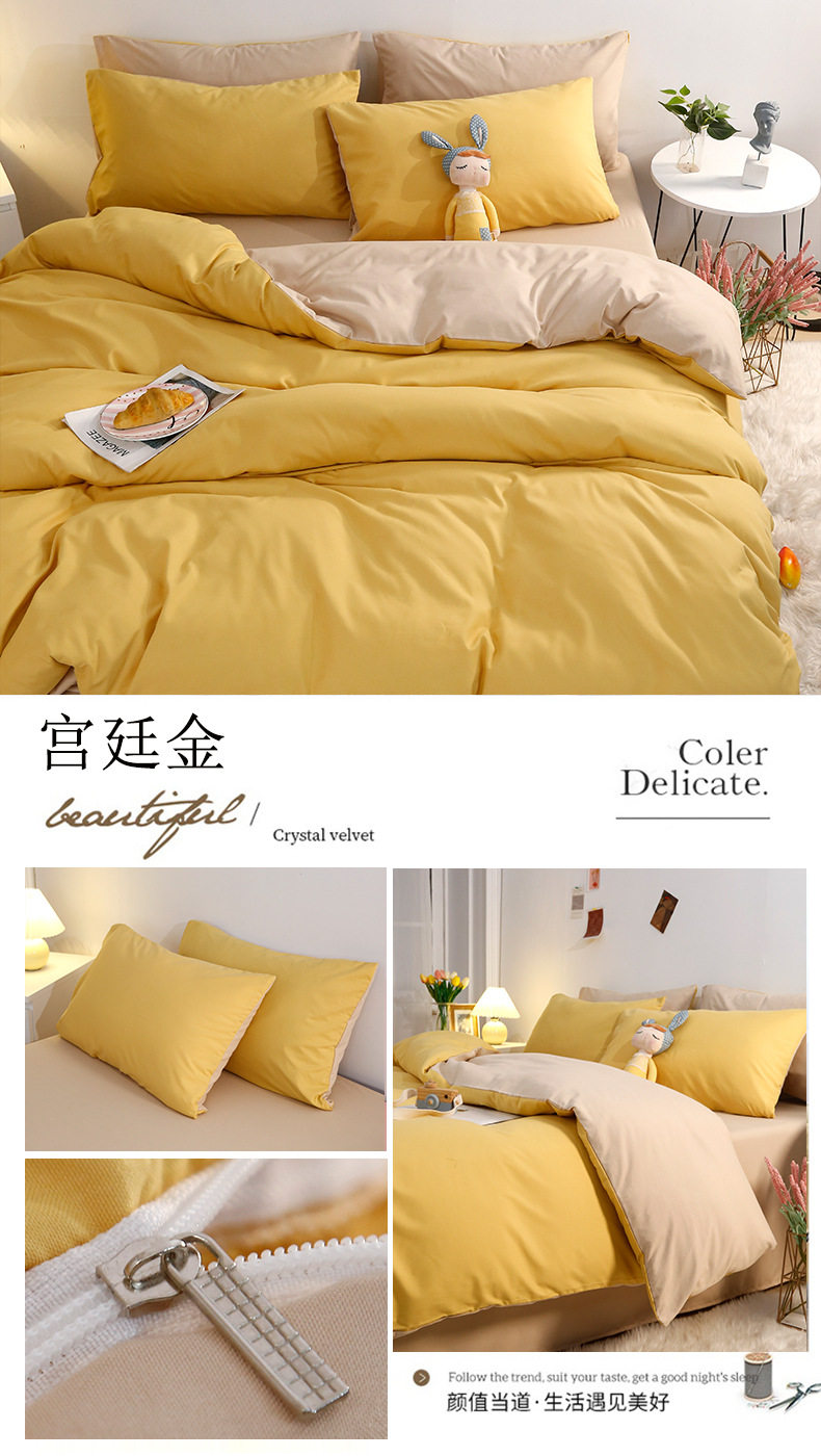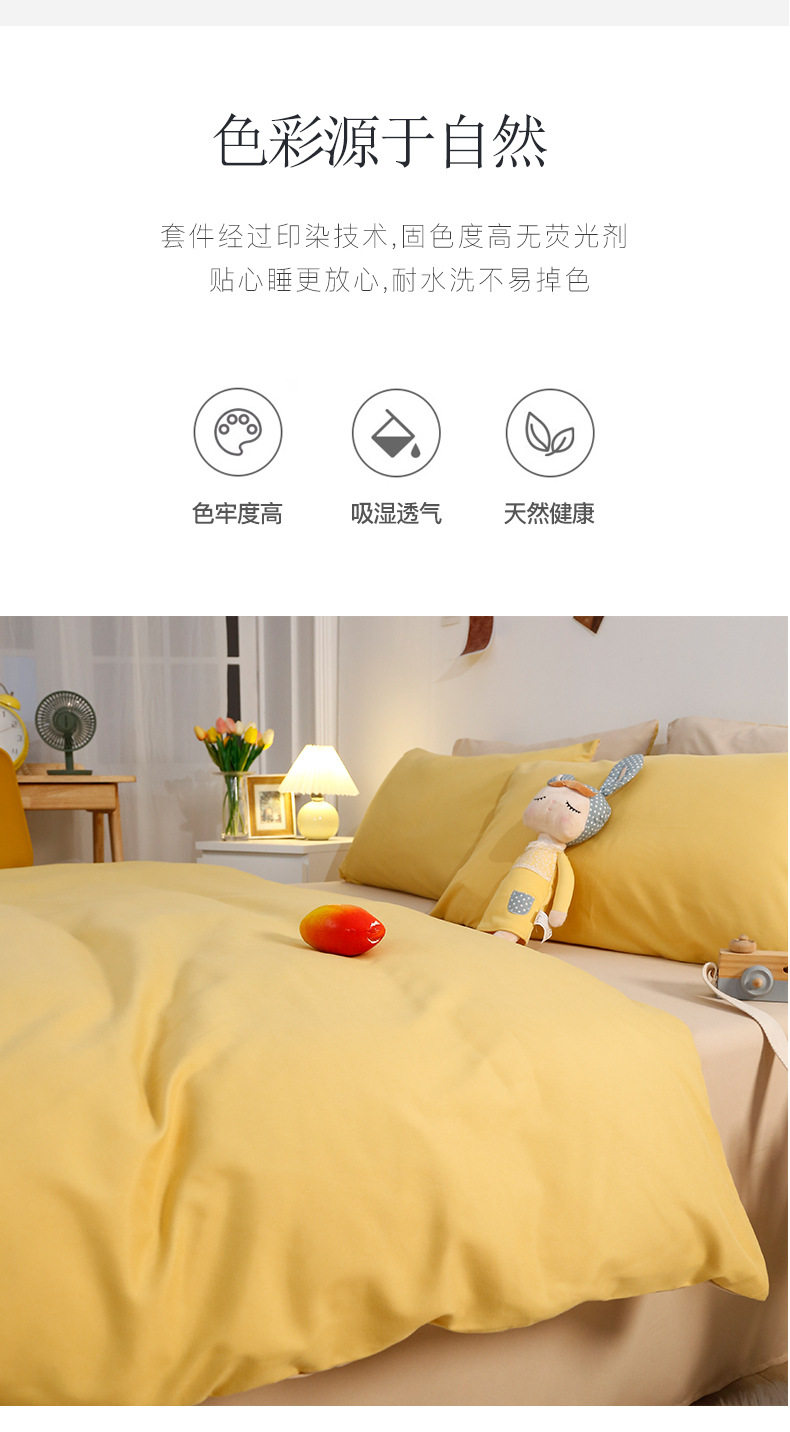 Japanese Pure Color Double Four-piece Bedding Set, Simple and Skin-friendly Brushed Student Dormitory Bed Bed Sheets and Quilt Cover Three-piece Set