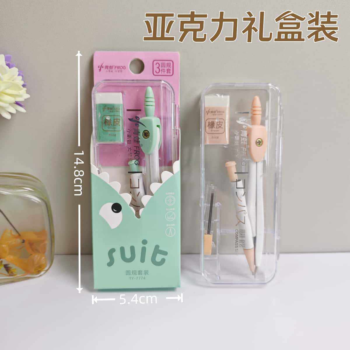Little Frog Compass Set Student Exam Ruler Set Standard Drawing Tools Learning Ruler Set Stationery