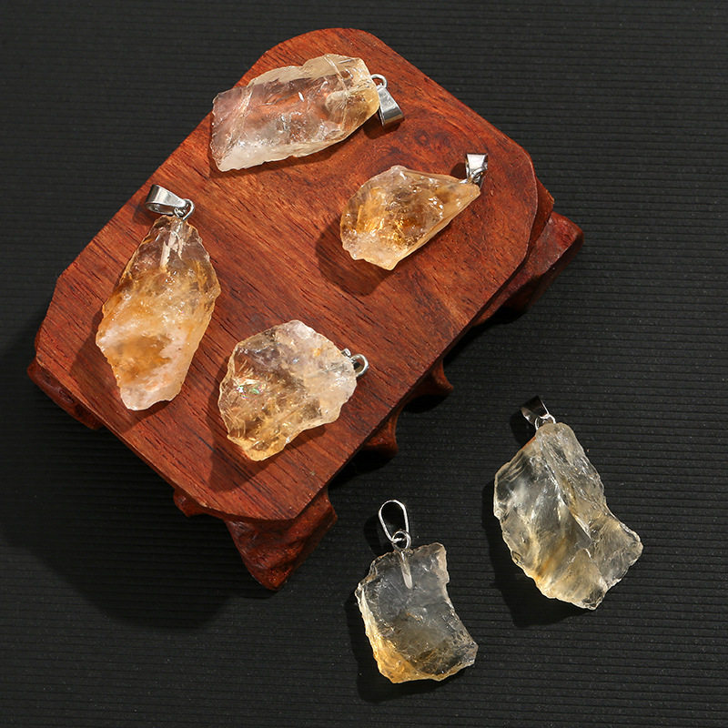 Crystal Pendant Citrine Electroplated Raw Stone Asymmetrical Versatile Necklace Pendant DIY Jewelry Accessories Cross-Border Hot Sale