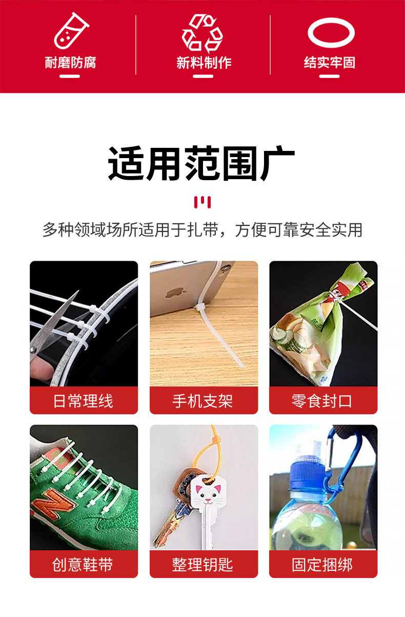 Nylon Cable Ties 100 Pieces Per Pack, Factory Direct Sales, 3*4*5*8 Multiple Specifications, Self-Locking Cable Ties, White, Bulk Wholesale