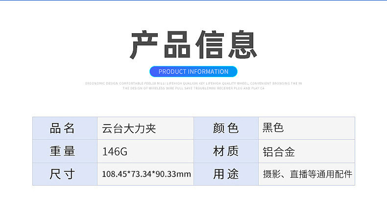 | Item No. | 3 round head strong clip pan/tilt |