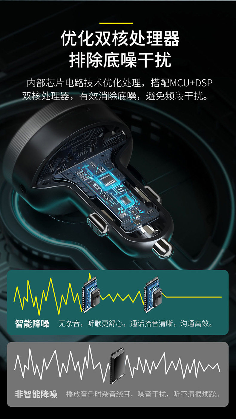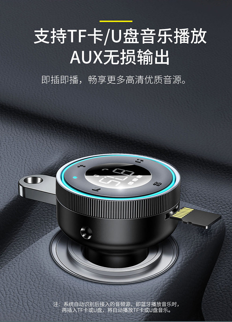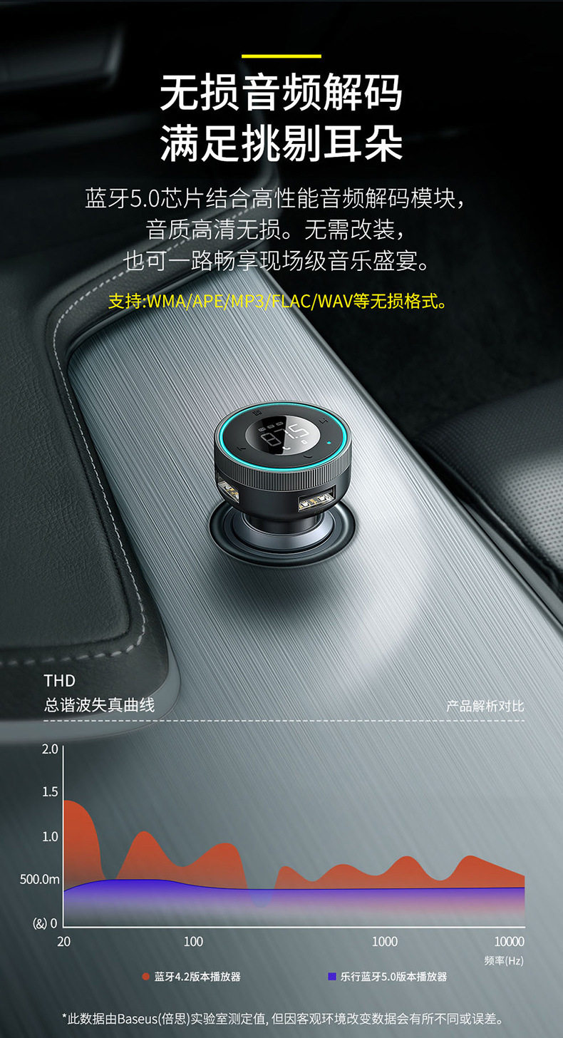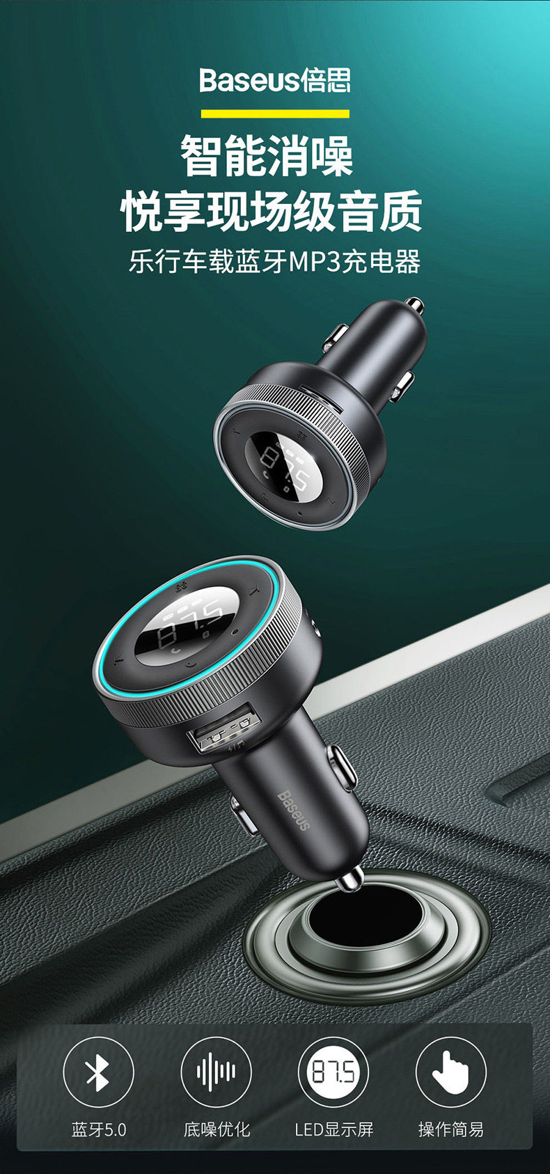 Baseus Car Bluetooth Charger Lossless Sound Quality MP3 Player Conversion with Dual usb Charging