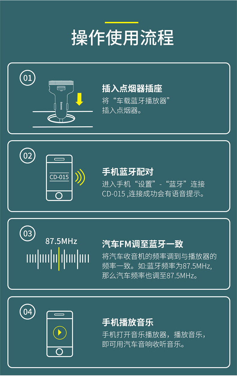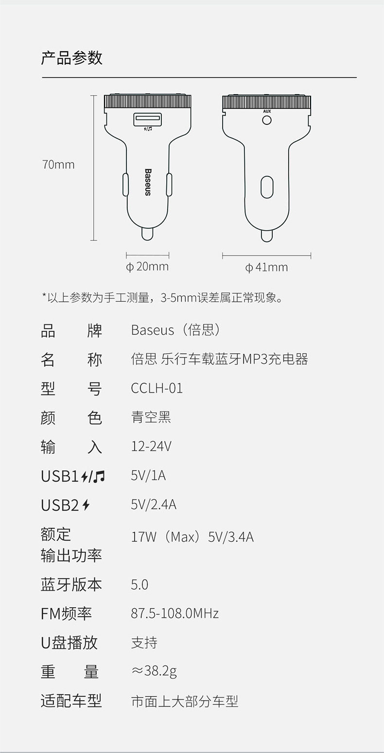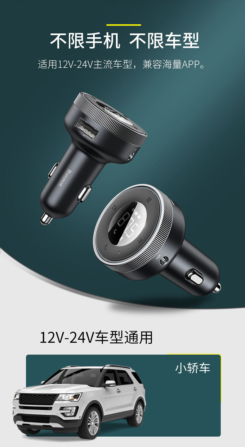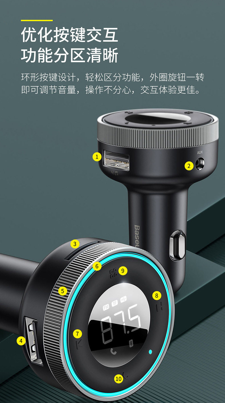 Baseus Car Bluetooth Charger Lossless Sound Quality MP3 Player Conversion with Dual usb Charging