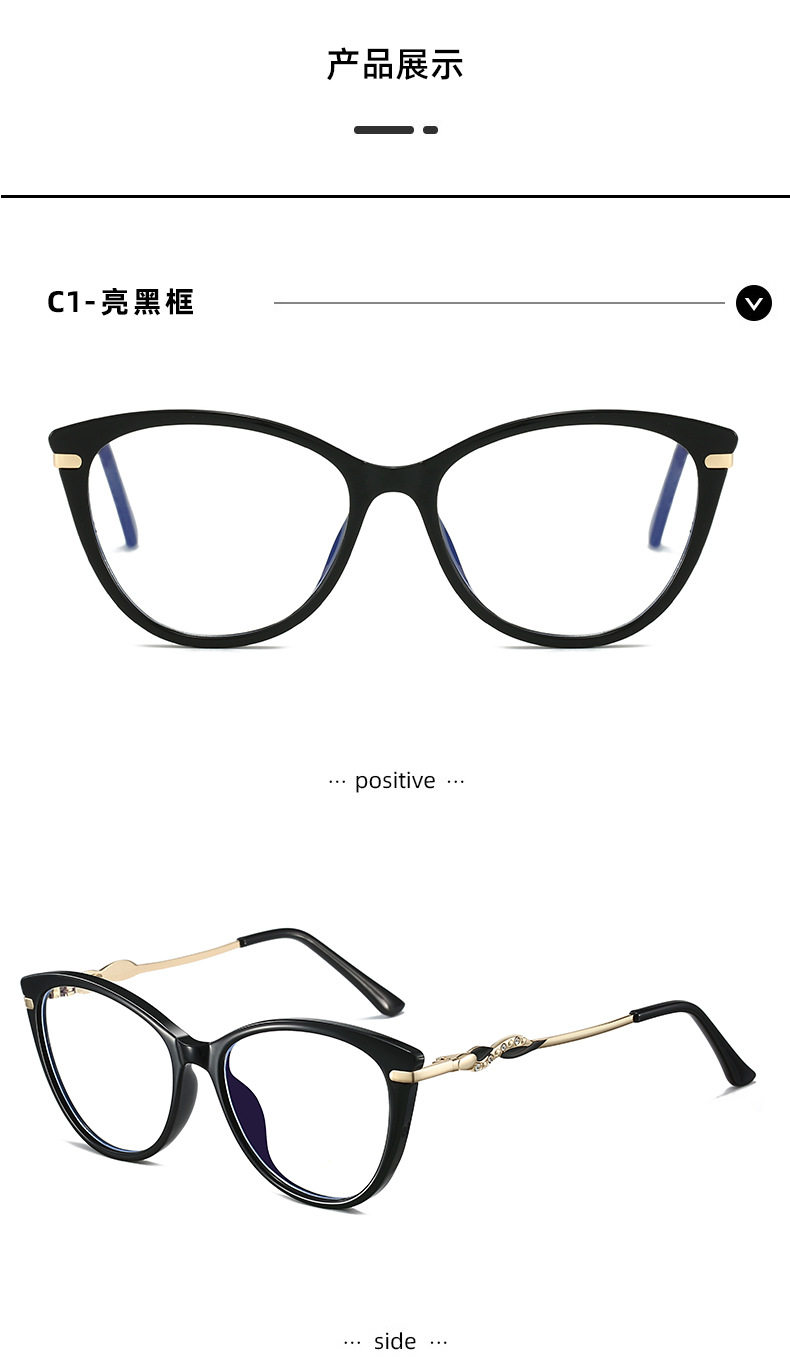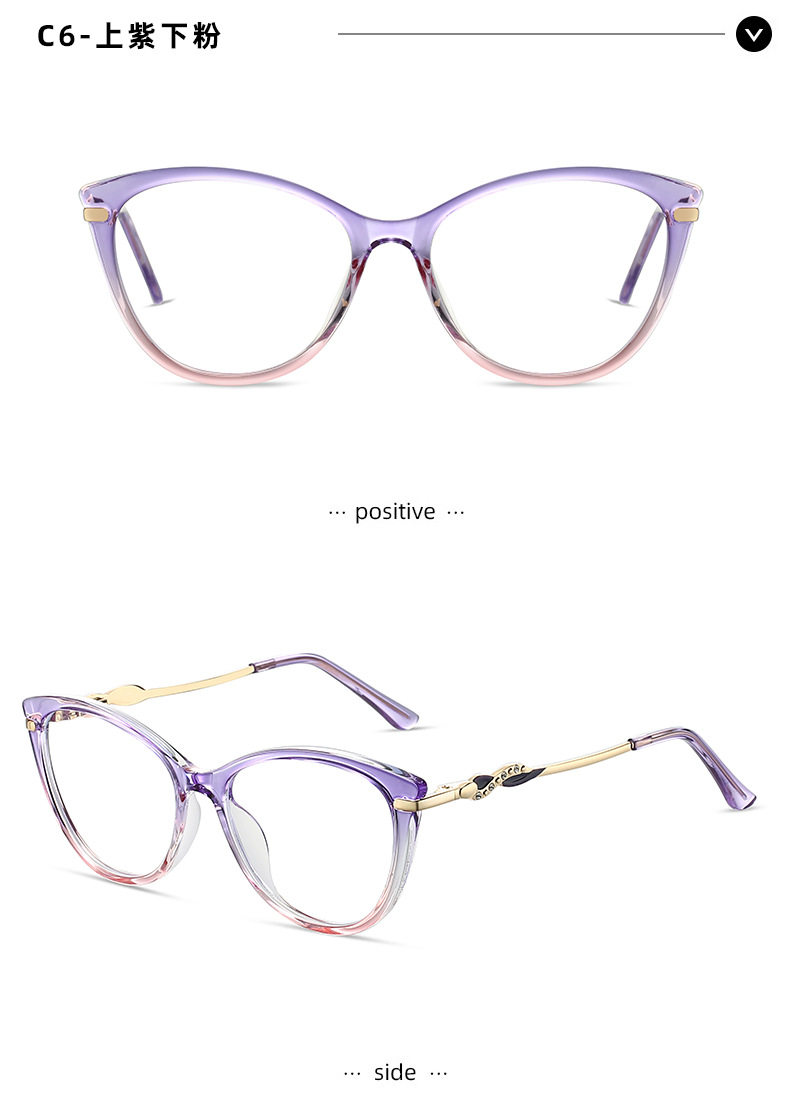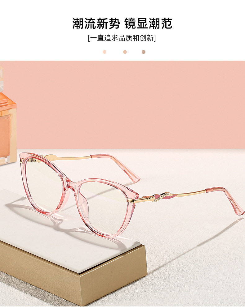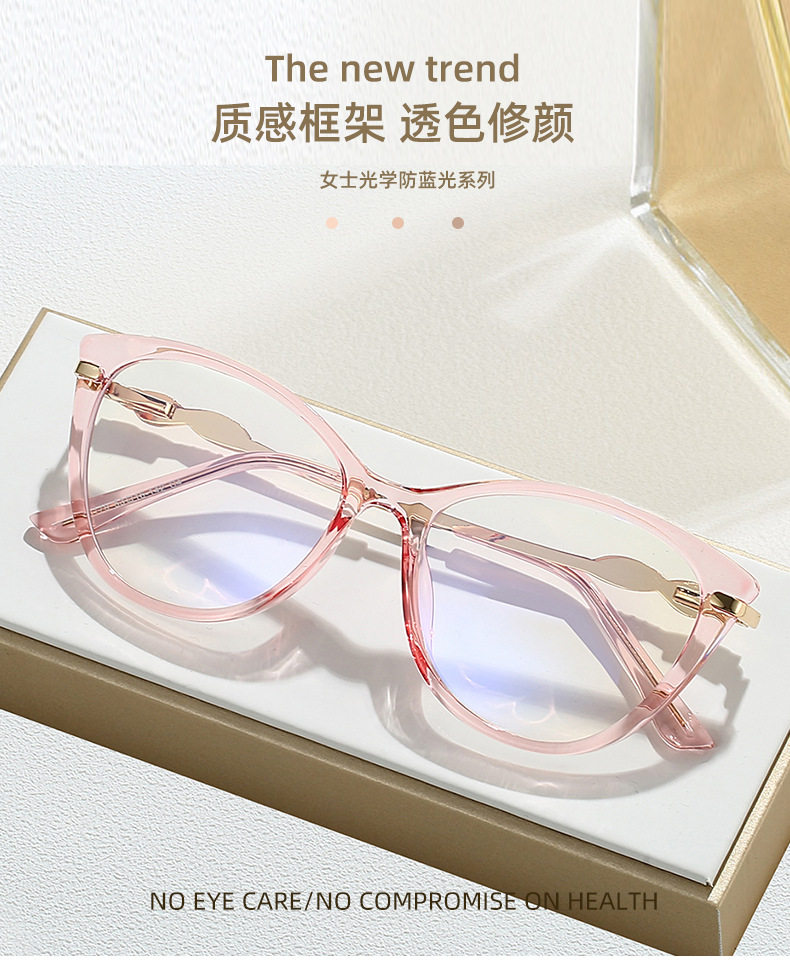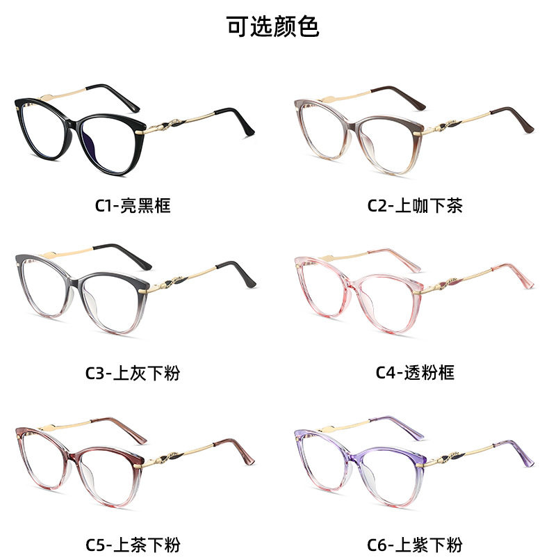 Cross-border New TR90 Fashion Anti-blue Glasses Frame Cat's Eye Women's Myopia Optical Flat Lens