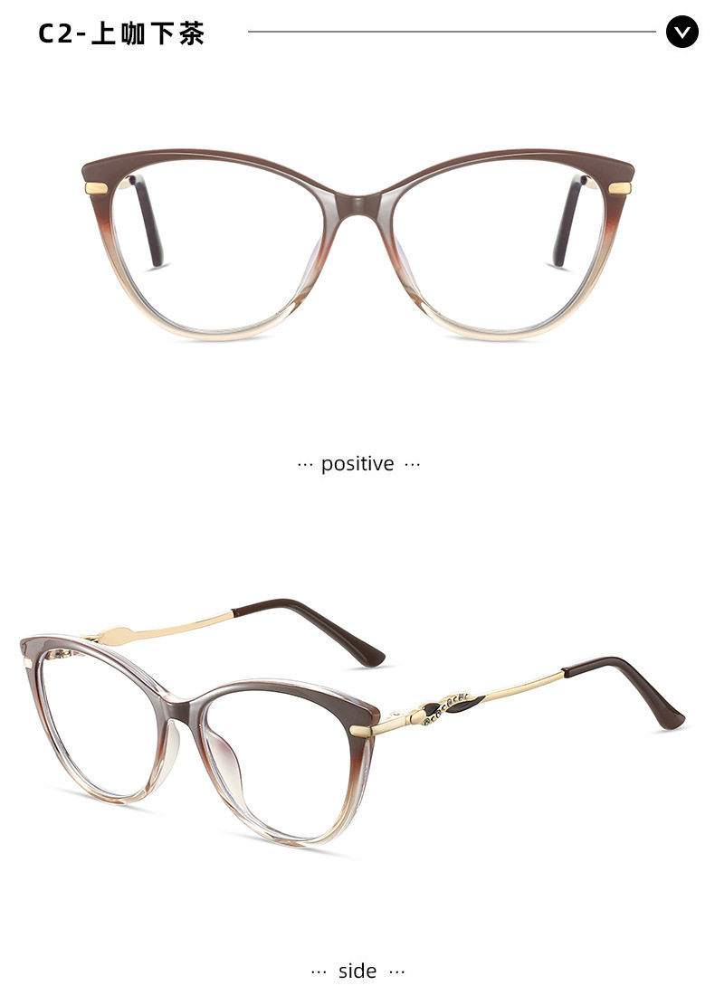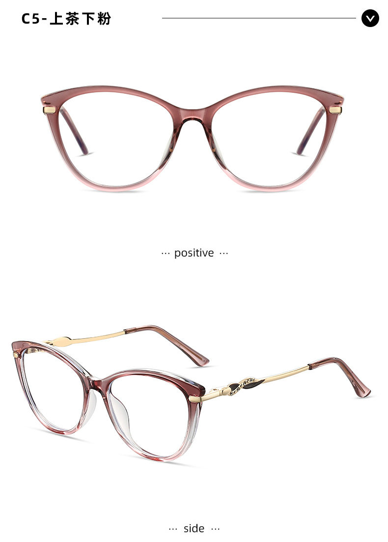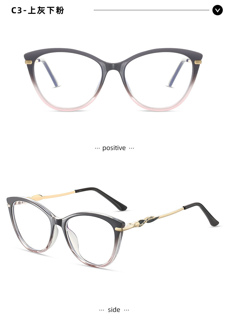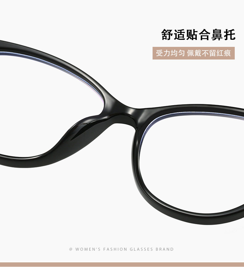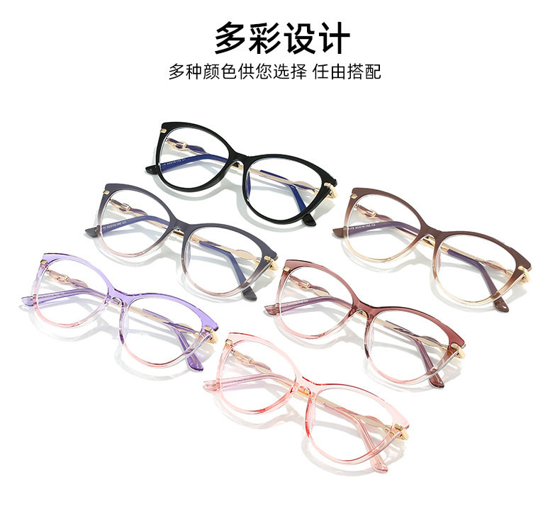 Cross-border New TR90 Fashion Anti-blue Glasses Frame Cat's Eye Women's Myopia Optical Flat Lens
