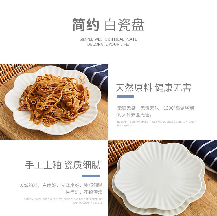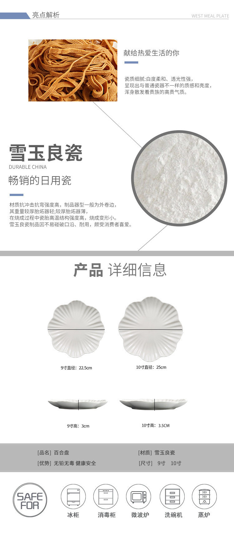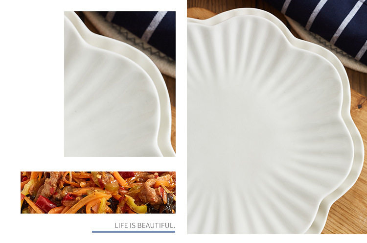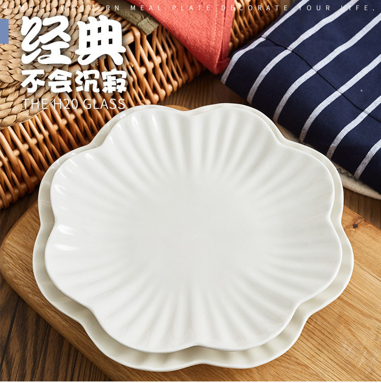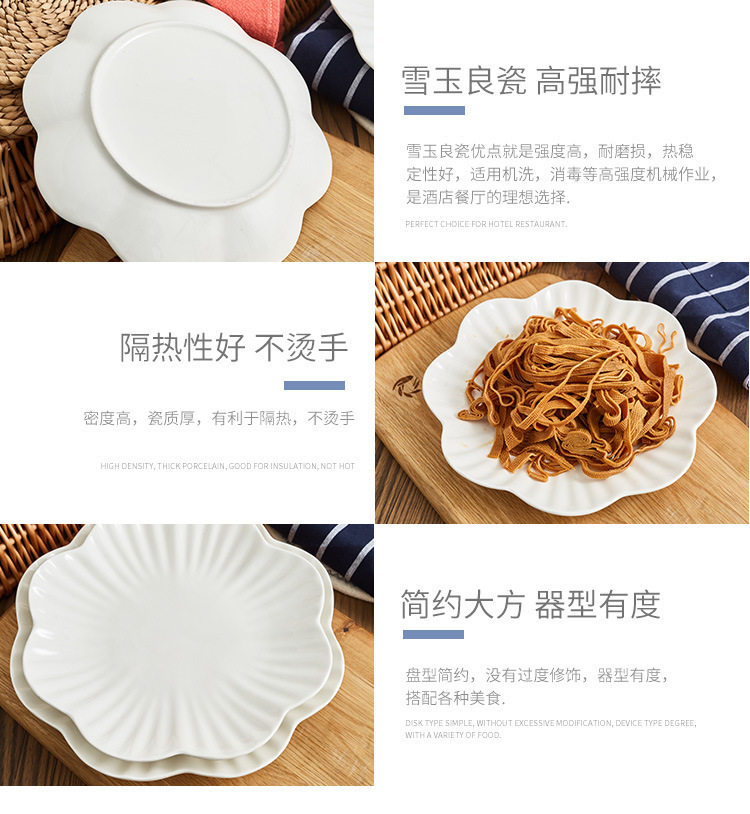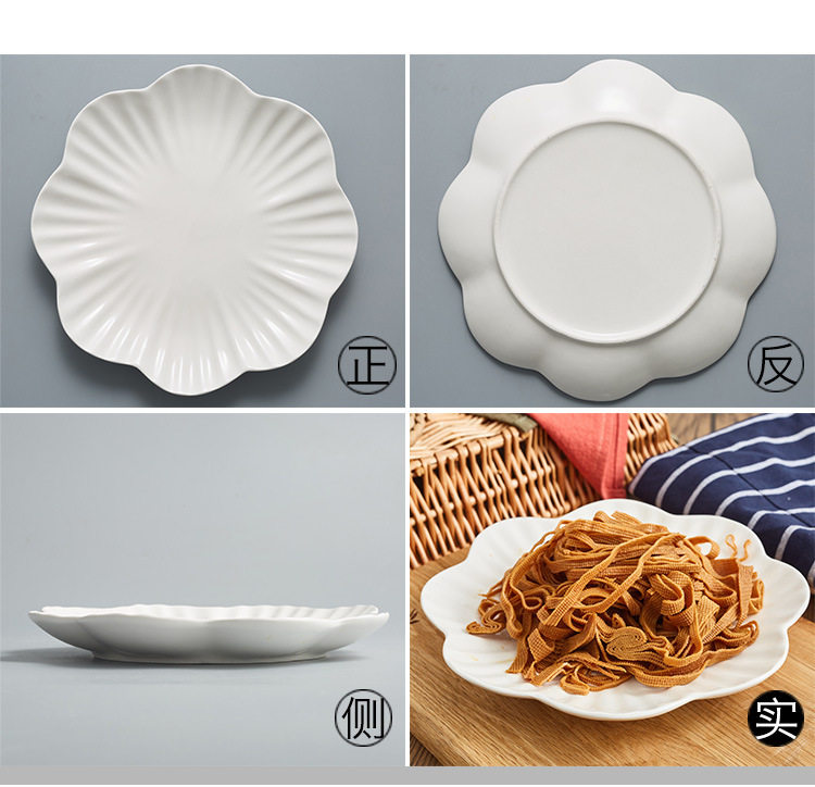 Ceramic Tableware Lily Plate Hotel Supplies Bowl Dish Plate Nordic Style Lace Dish Creative White Porcelain Dish Shanxi