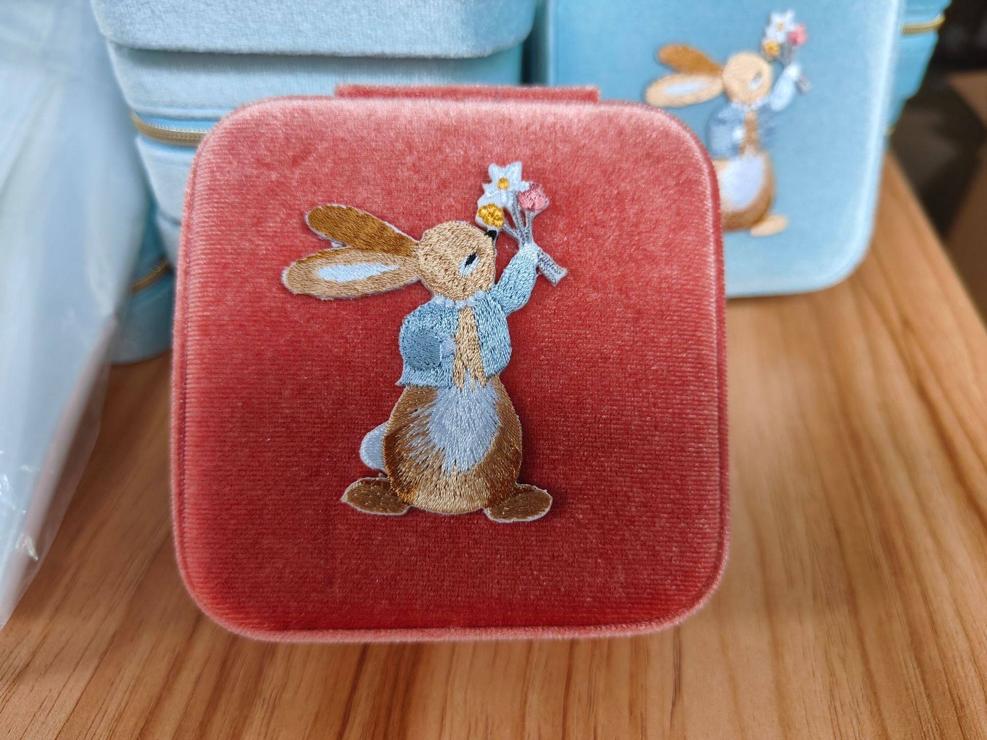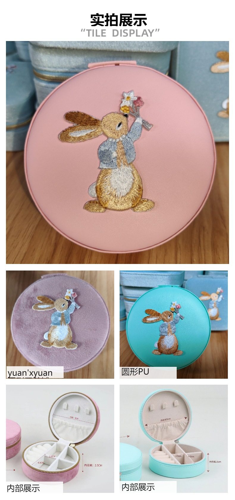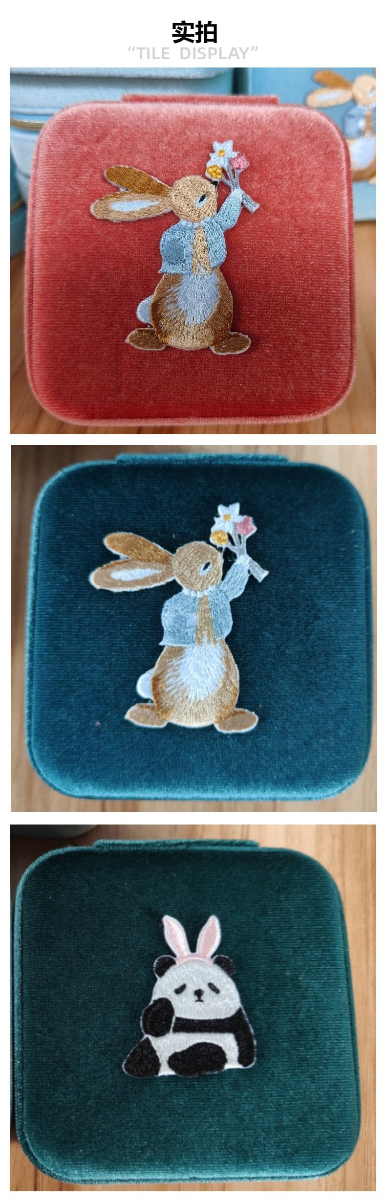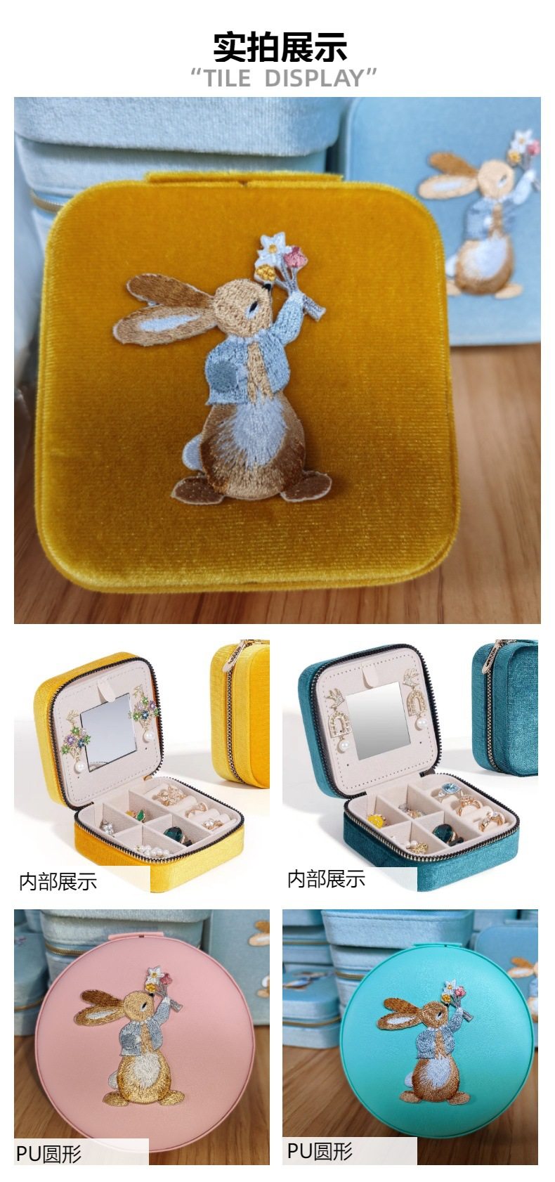 Cute Little Rabbit Jewelry Box Embroidered Cartoon Jewelry Storage Box Gold Velvet High-End Jewelry Earrings Storage Box