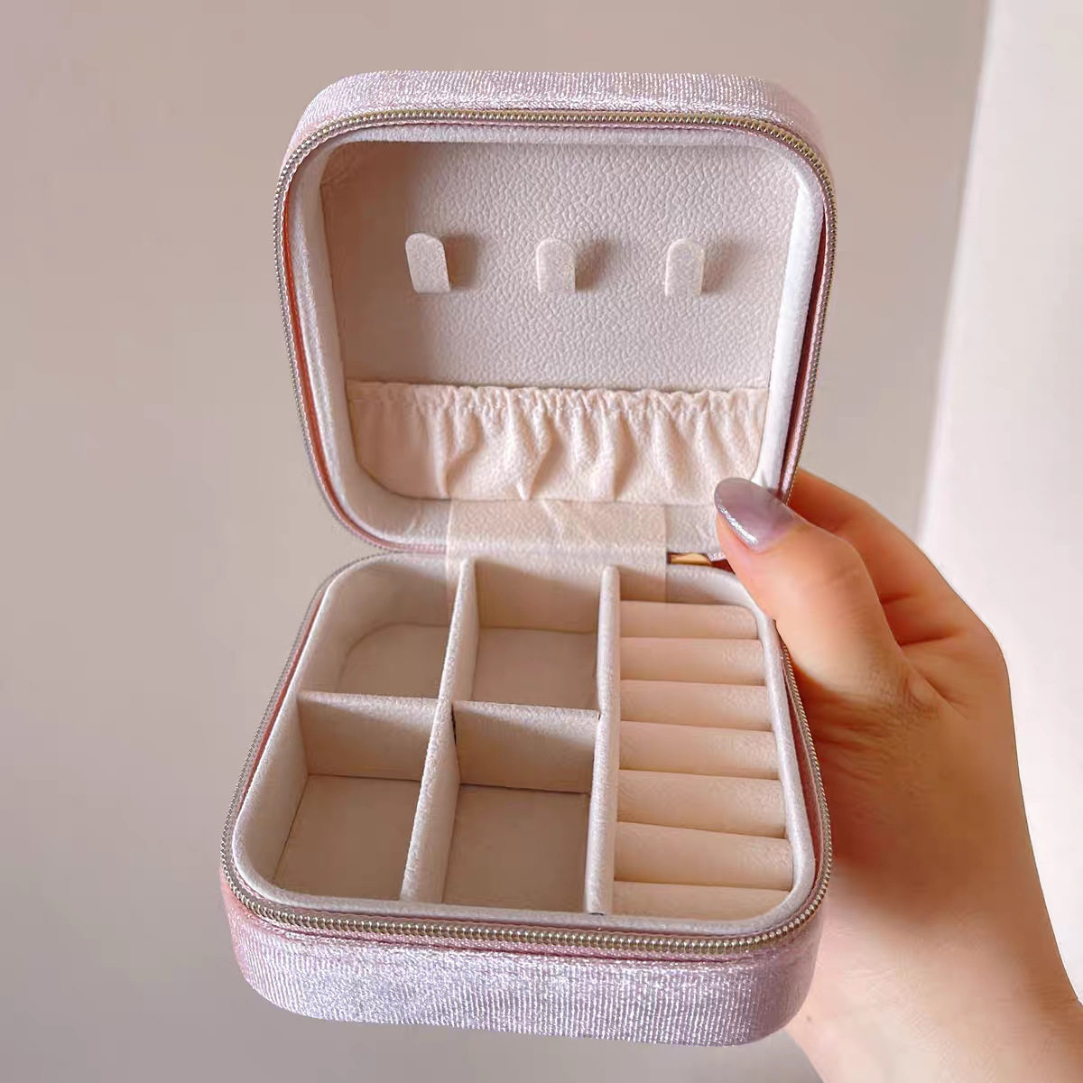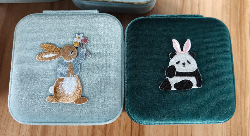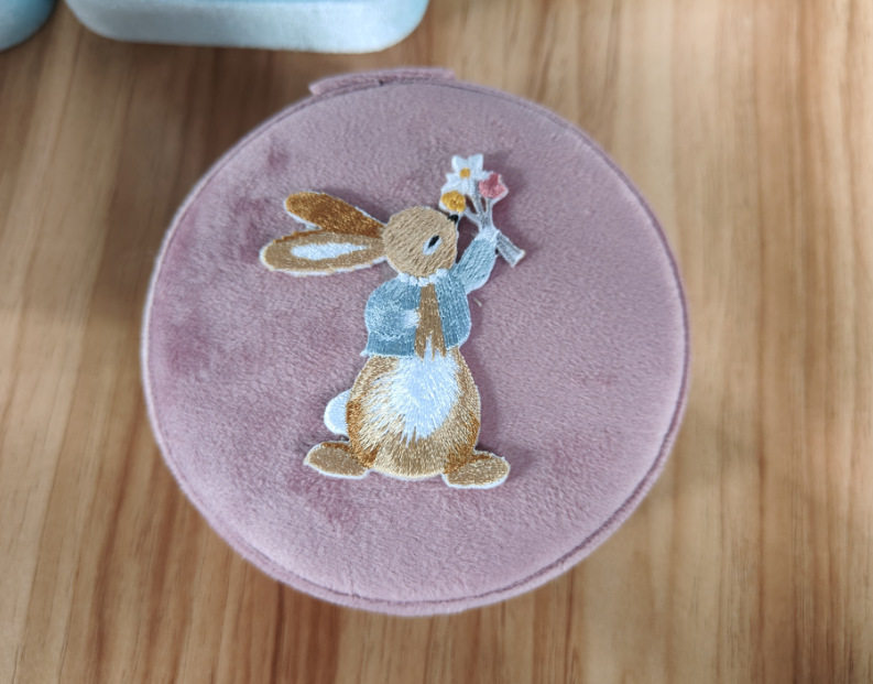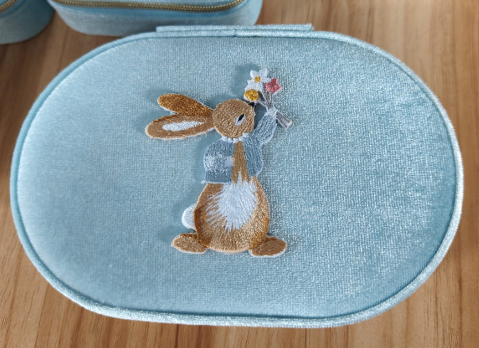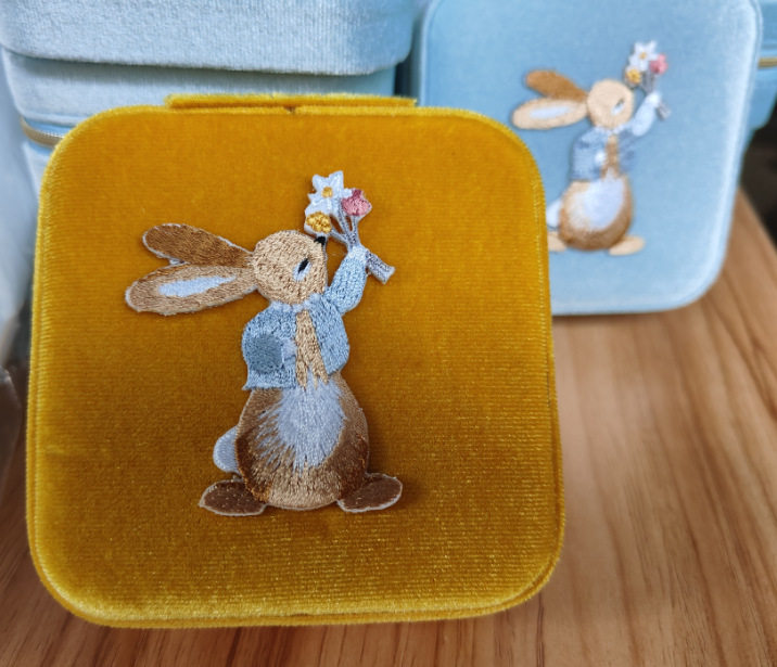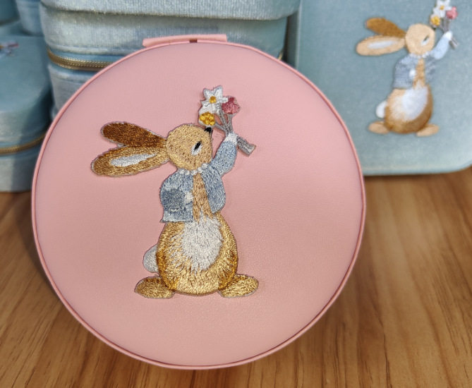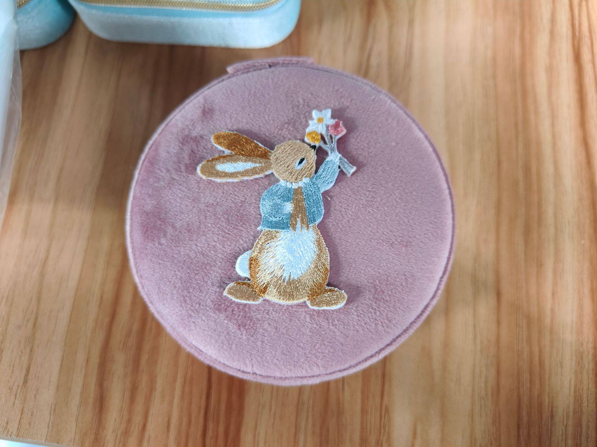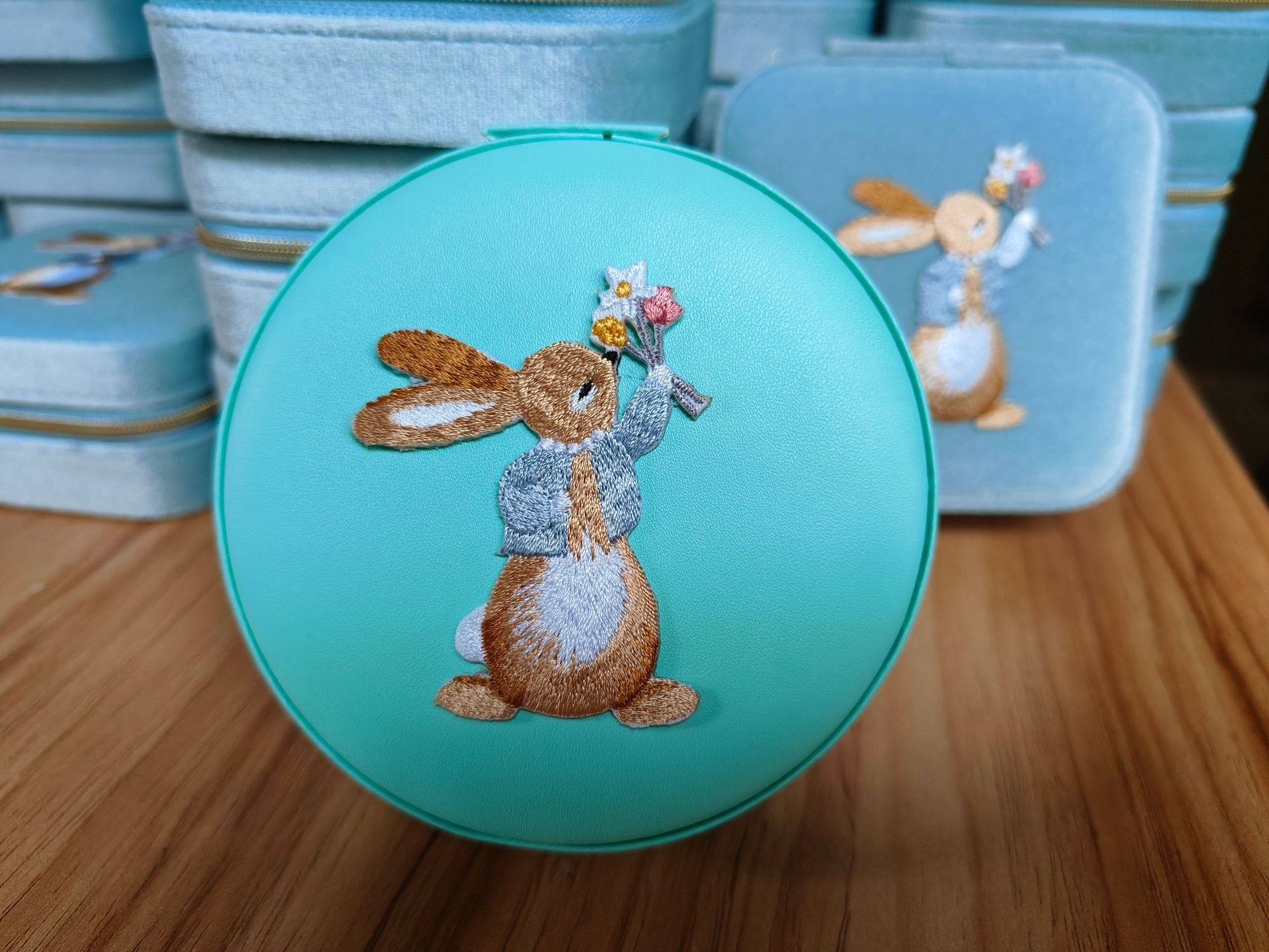Cute Little Rabbit Jewelry Box Embroidered Cartoon Jewelry Storage Box Gold Velvet High-End Jewelry Earrings Storage Box