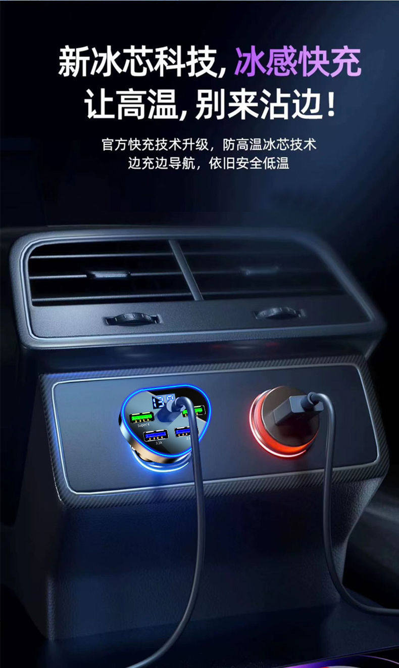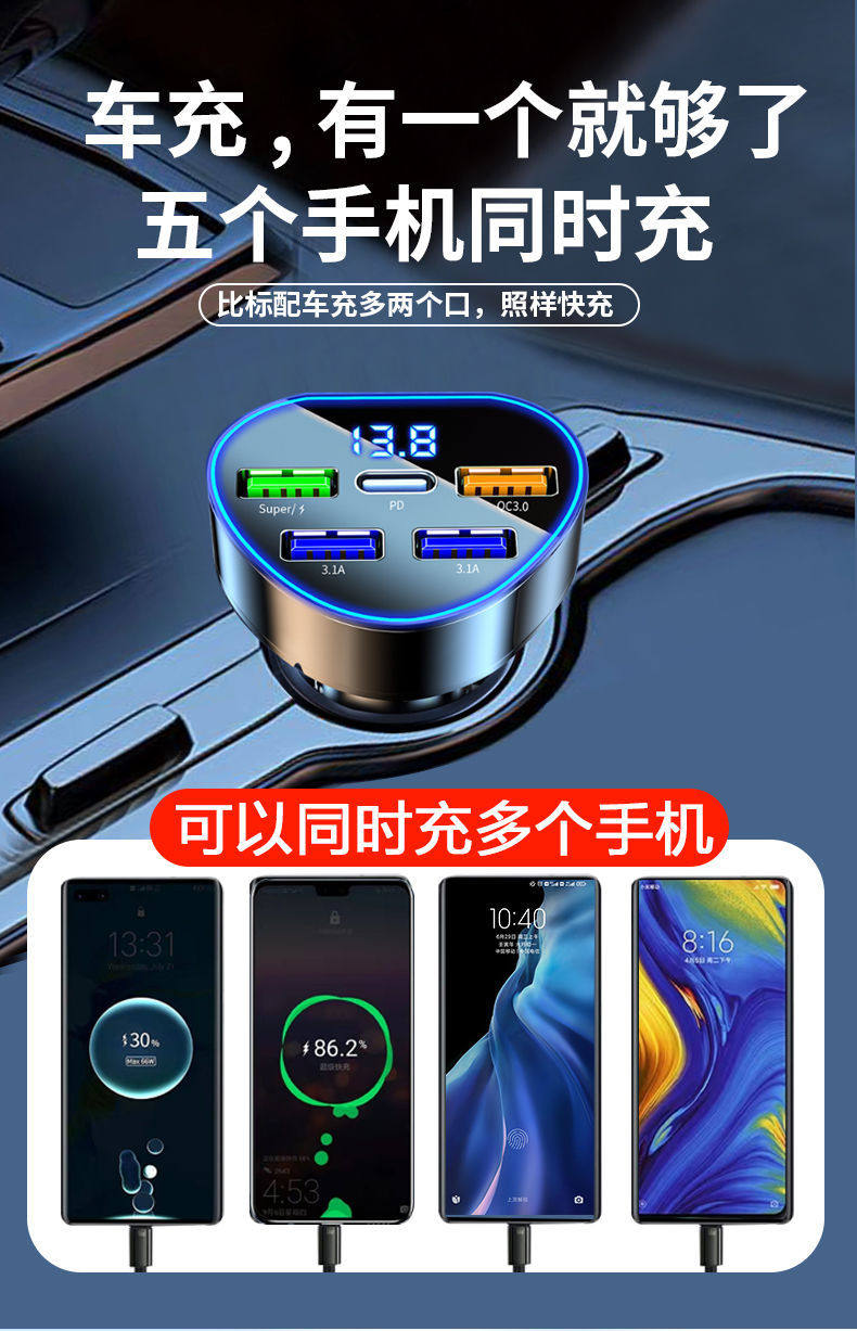 New heart-shaped five-port car charger fast charging head cigarette lighter conversion head multi-function digital display multi-USB car charger