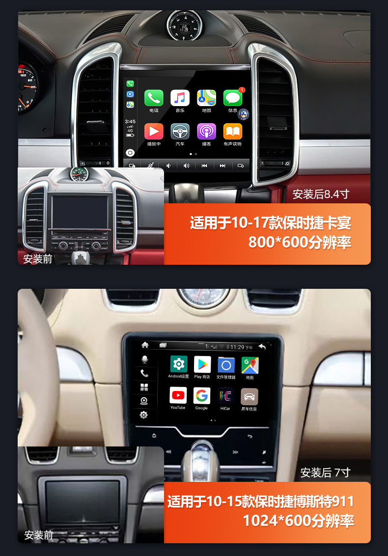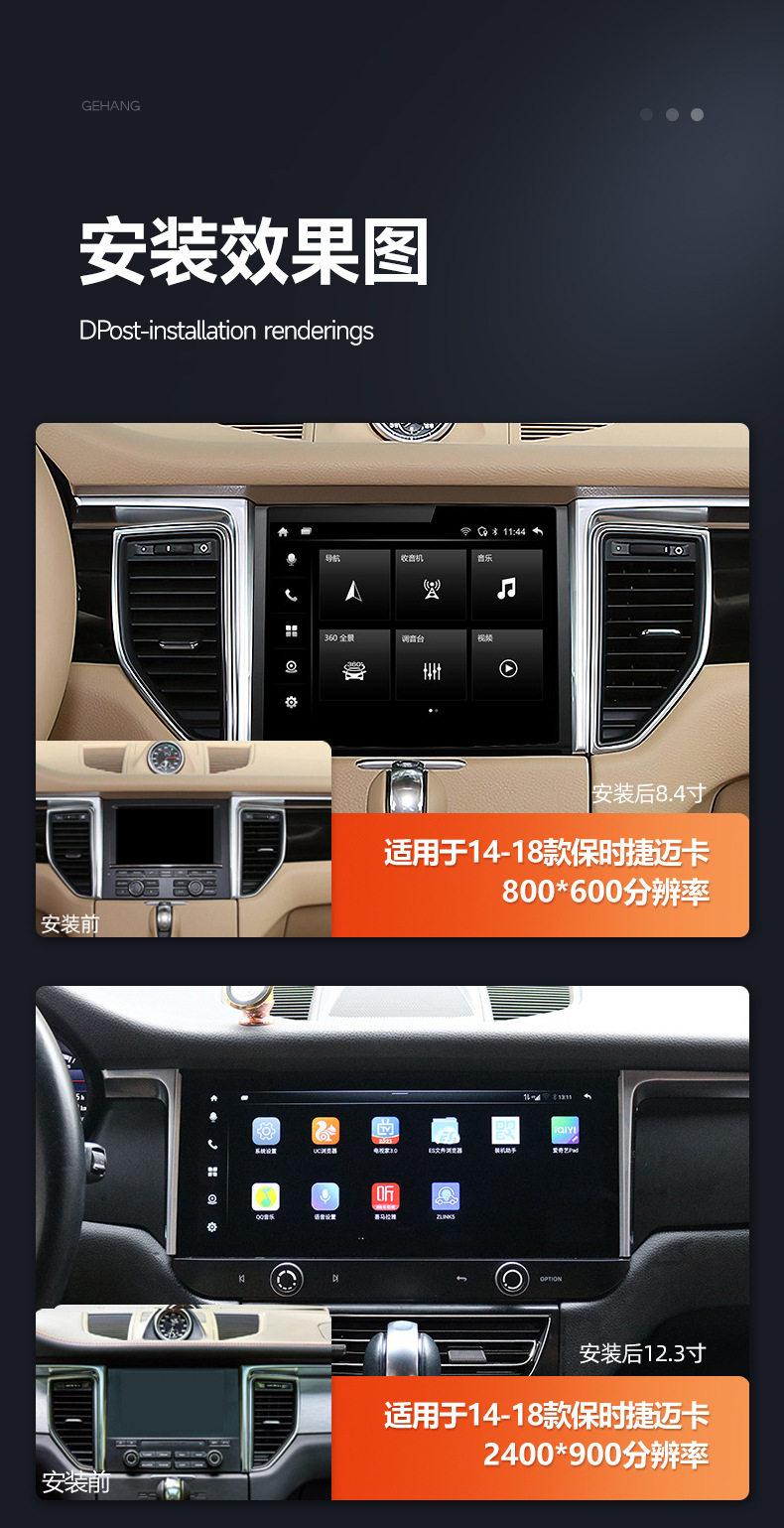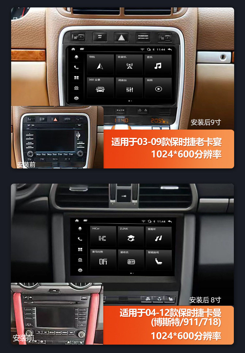| Specifications | [03-09] 9 inch old cayenne,[04-12] 8-inch old Kaman/Boster,[14-18 years] 8.4 inch Mica,[14-18 years] 12.3 inch Mica,[10-17 years] 8.4 inch cayenne,[10-16 years] 8.4 inch Panamera,[10-15 years] 7 inch Bost/911,Universal 360 panoramic camera |