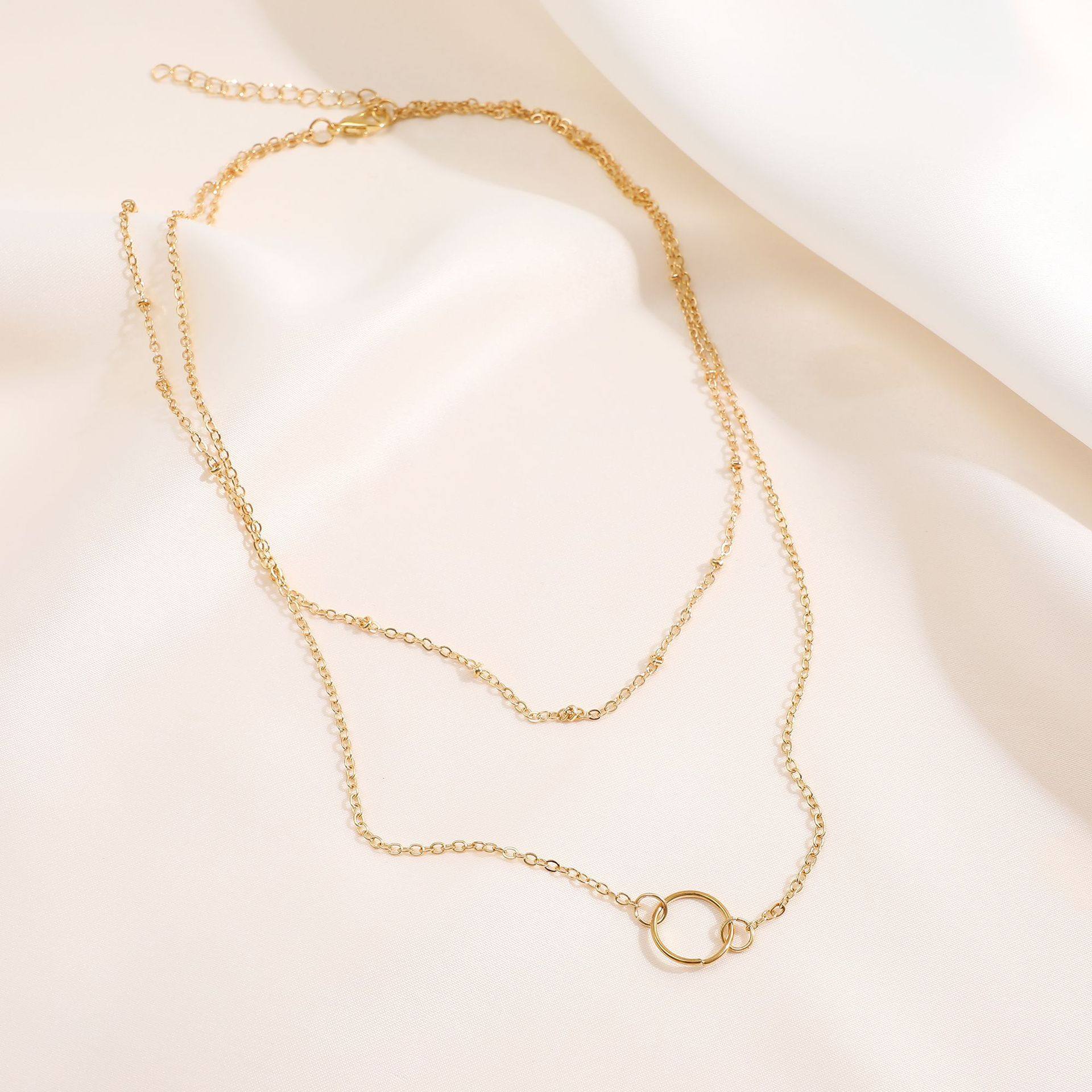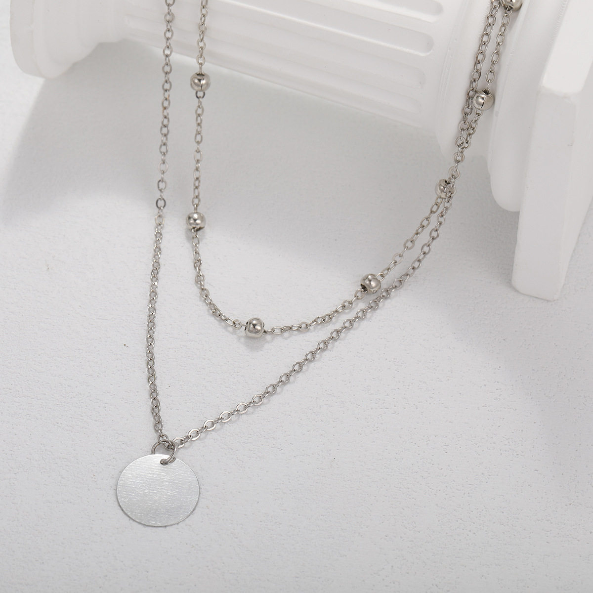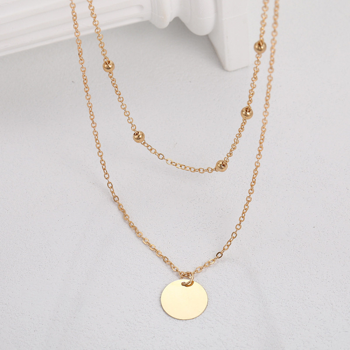Cross-border Retro Simple Style Double-layer Round Necklace Clavicle Chain Alloy Bead Chain Disc Pendant Necklace Collar for Women