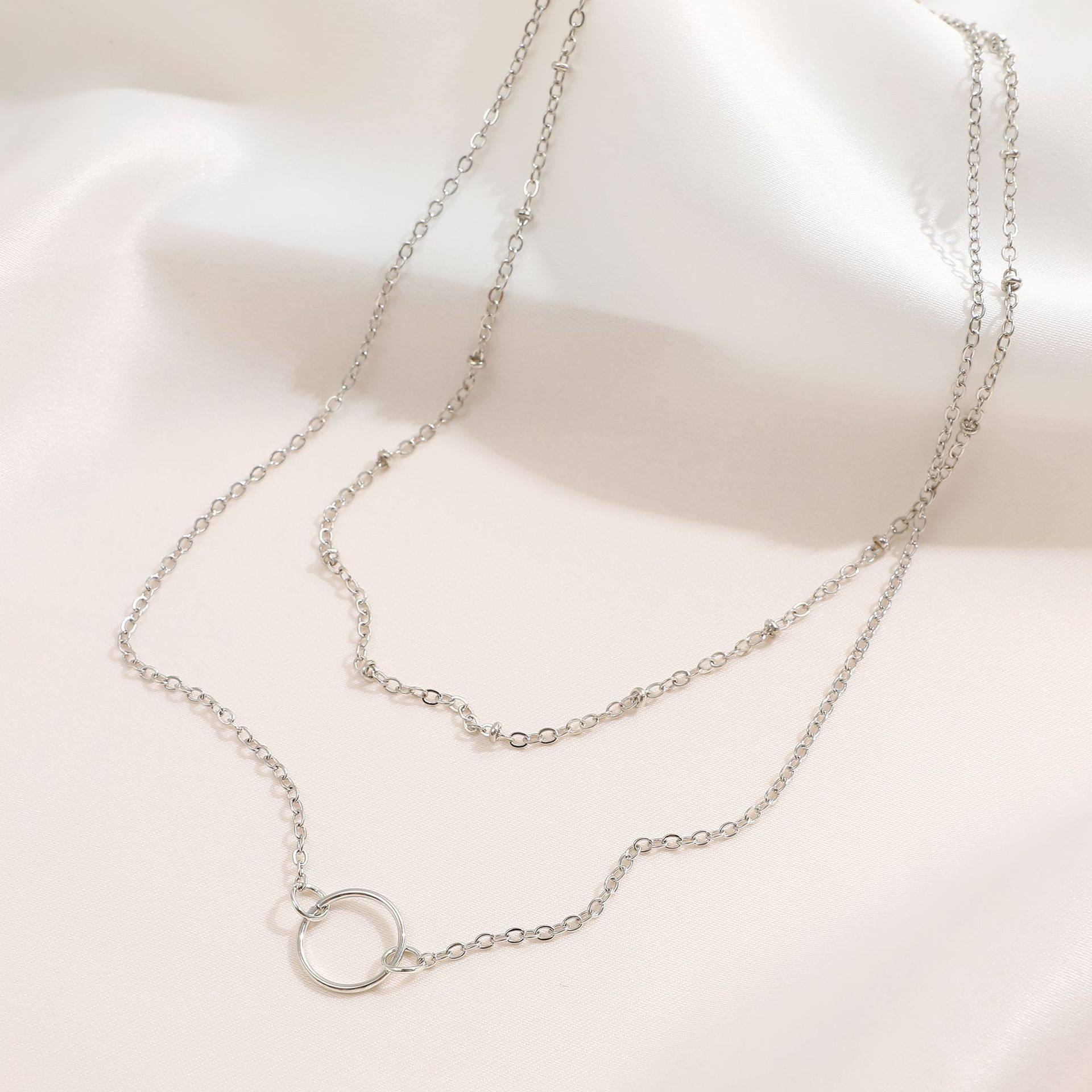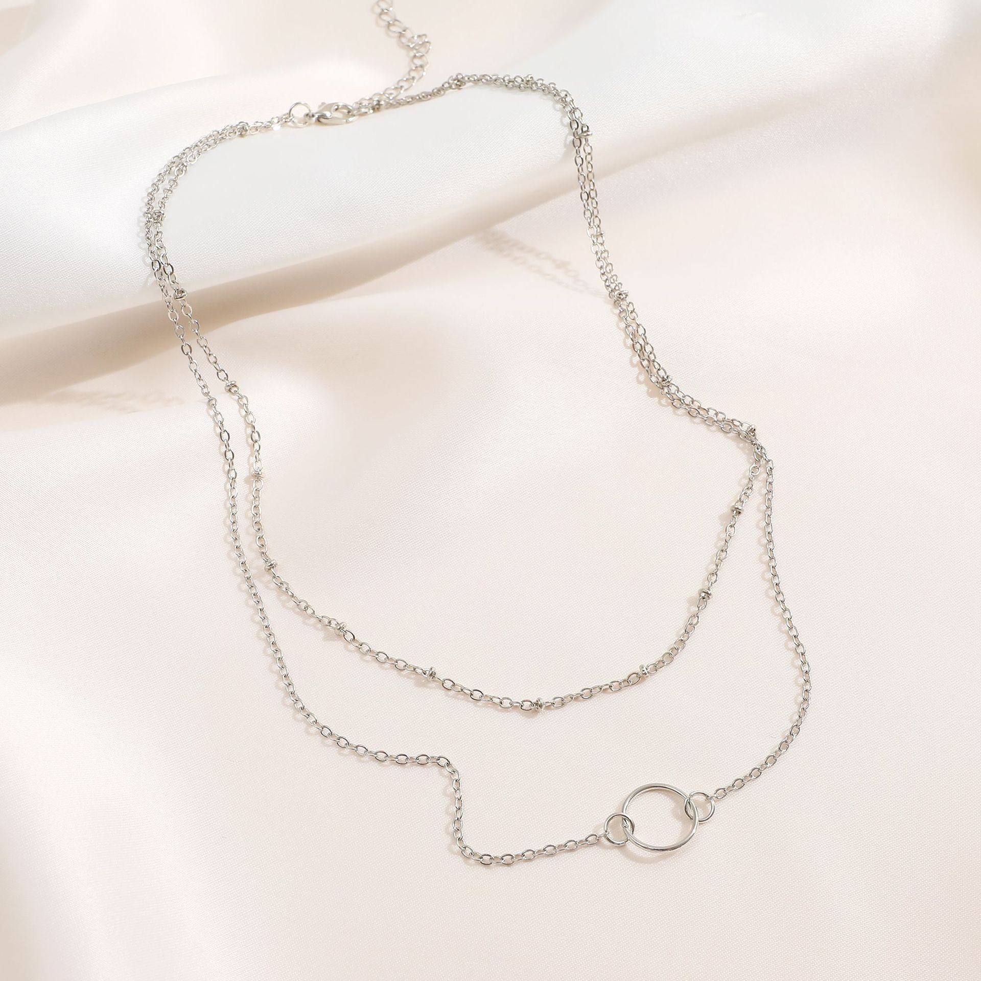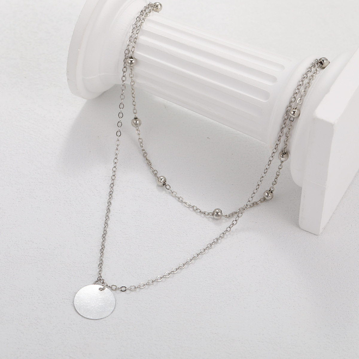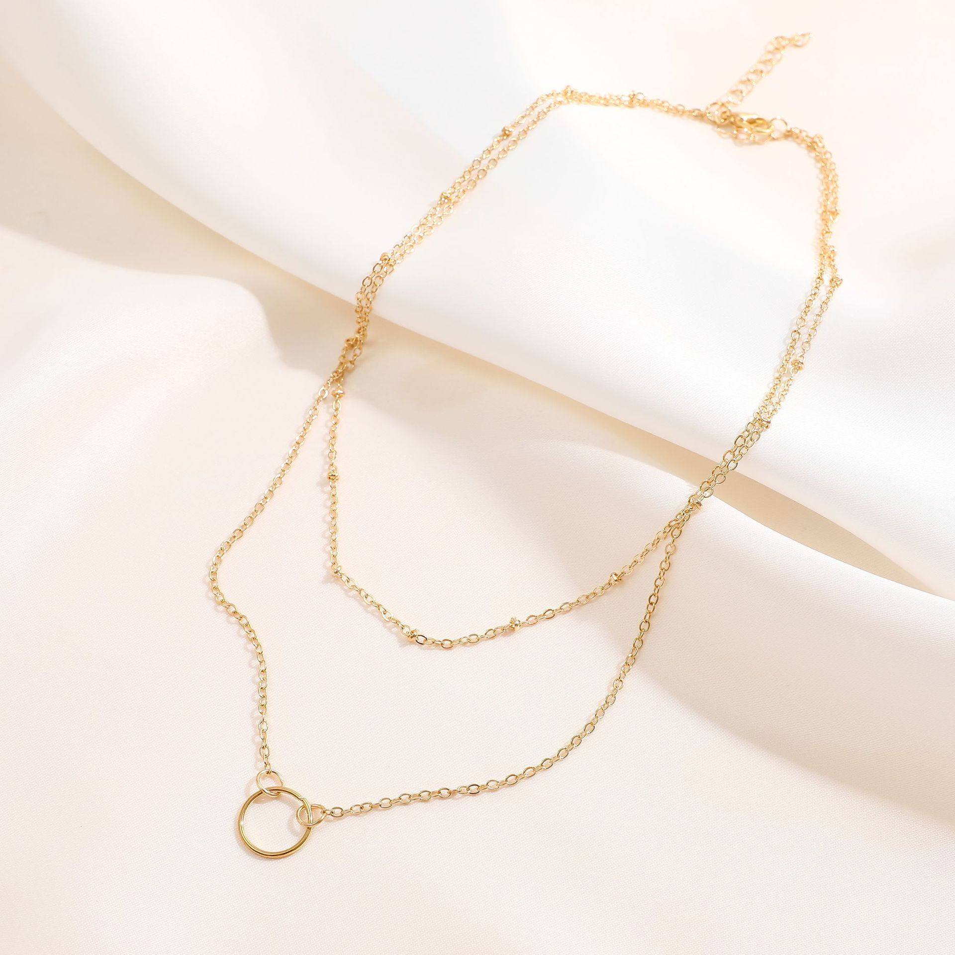 Cross-border Retro Simple Style Double-layer Round Necklace Clavicle Chain Alloy Bead Chain Disc Pendant Necklace Collar for Women