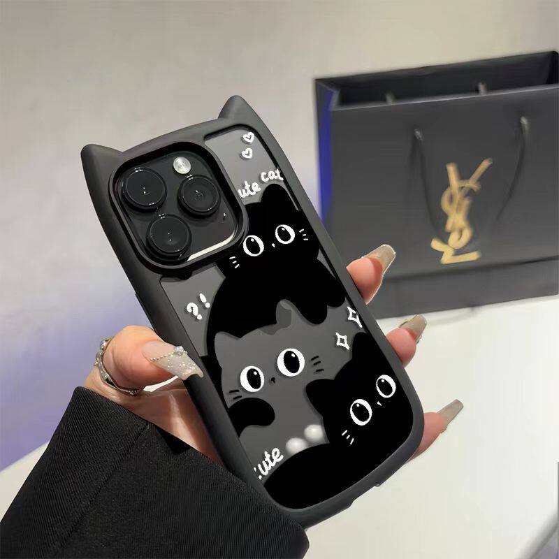 Cartoon Cat Phone Case Suitable for Apple 16, iPhone 15 Pro, 14/13, 3D Cat Ears, 12Th Generation, Cute and Fun