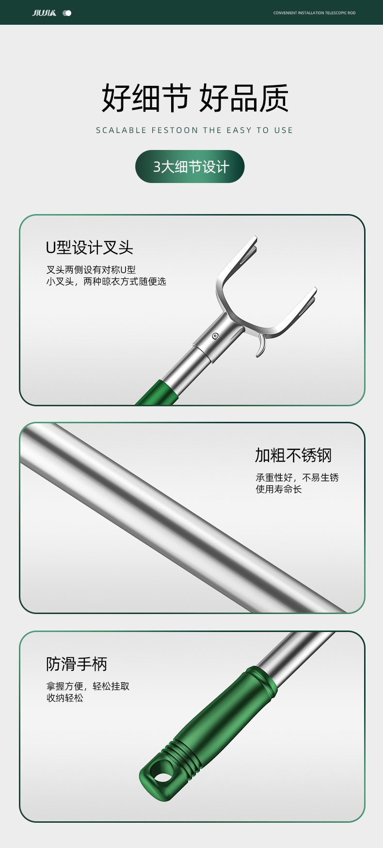 | Color | Plastic fork [non-retractable 1m] beige gray ✦ ☆,Aluminum alloy fork head [extendable 95-150cm] reinforced stainless steel pole, dark green✦☆,Aluminum alloy fork head [extendable 95-150cm] reinforced stainless steel pole, beige✦☆,Aluminum alloy fork head [extendable 88-200cm] reinforced stainless steel pole, dark green✦☆,Aluminum alloy fork head [extendable 88-200cm] reinforced stainless steel pole, beige✦☆,Aluminum alloy fork, telescopic 87-200cm, dark green✦☆,Aluminum alloy fork, telescopic 87-200cm, beige gray✦☆,Plastic fork [retractable 72-115cm] dark green✦☆,Plastic fork [retractable 72-115cm] beige gray✦☆,Plastic fork head [fixed 1m] - beige✦☆,Plastic fork [fixed 1m] dark green✦☆,Plastic fork [non-retractable 1m] dark green✦☆,Dark green aluminum fork 1.5m + 10 stainless steel hangers✦☆,Rice gray aluminum fork 1.5m + 10 stainless steel hangers✦☆,Dark green aluminum fork 2m + 10 stainless steel hangers✦☆,Rice gray aluminum fork 2m + 10 stainless steel hangers✦☆,Dark green aluminum fork 1.5m + hook✦☆,Rice gray aluminum fork 1.5m + hook✦☆,Dark green aluminum fork 2m + hook✦☆,Rice gray aluminum fork 2m + hook✦☆ |