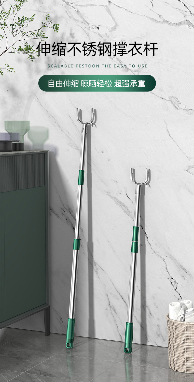 Clothes Pole, Household Clothes Drying Pole, Retractable and Extended Clothes Fork, Stainless Steel Clothes Drying Pole, Balcony Clothes Hanger