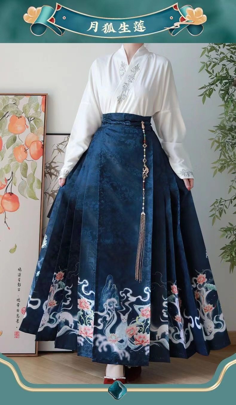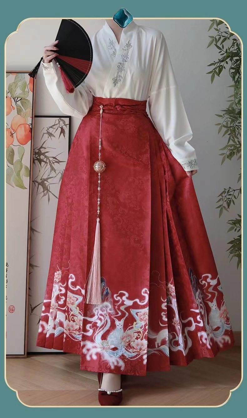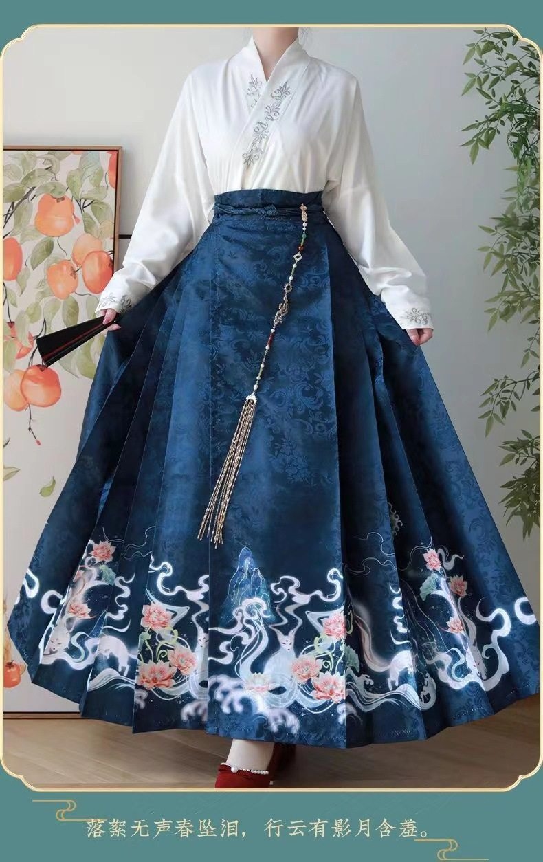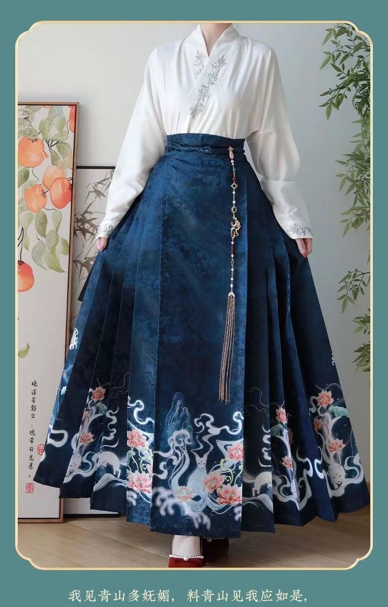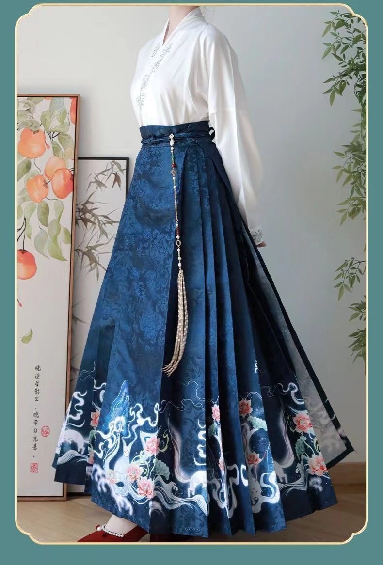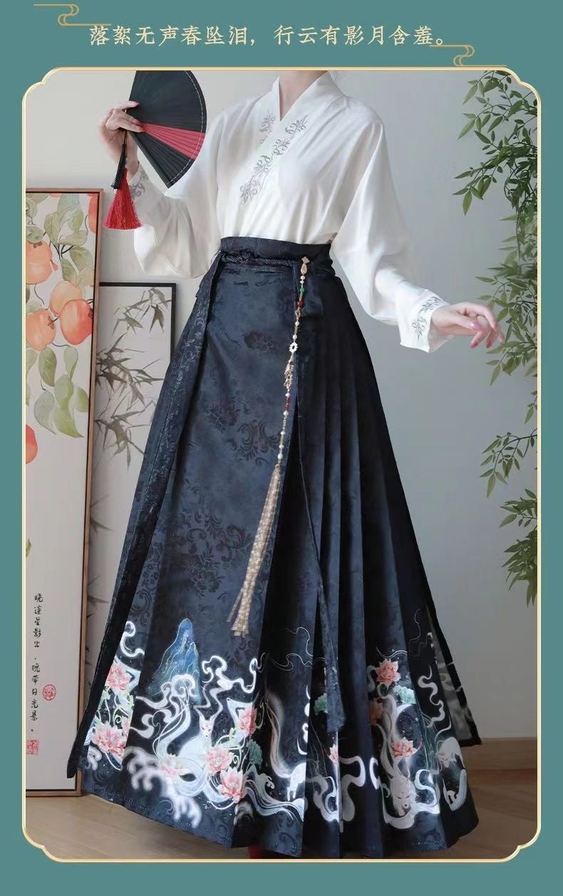2023 Hanfu Pleated Skirt for Adults, Modified Mamian Skirt, National Style Half Skirt Women's Set, New Chinese Style National Trend
