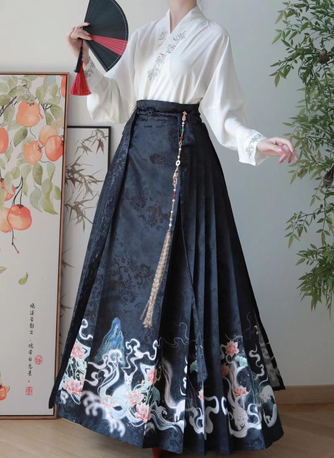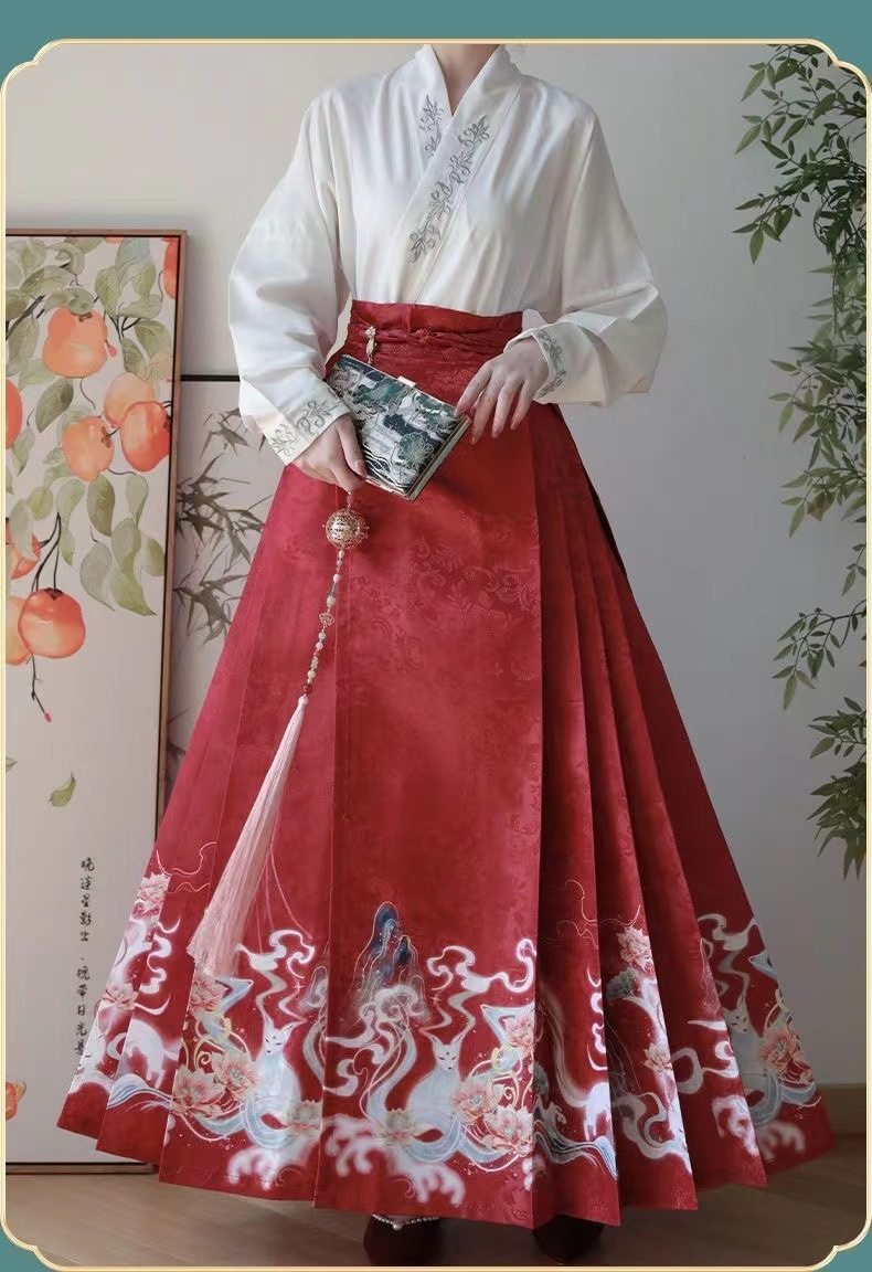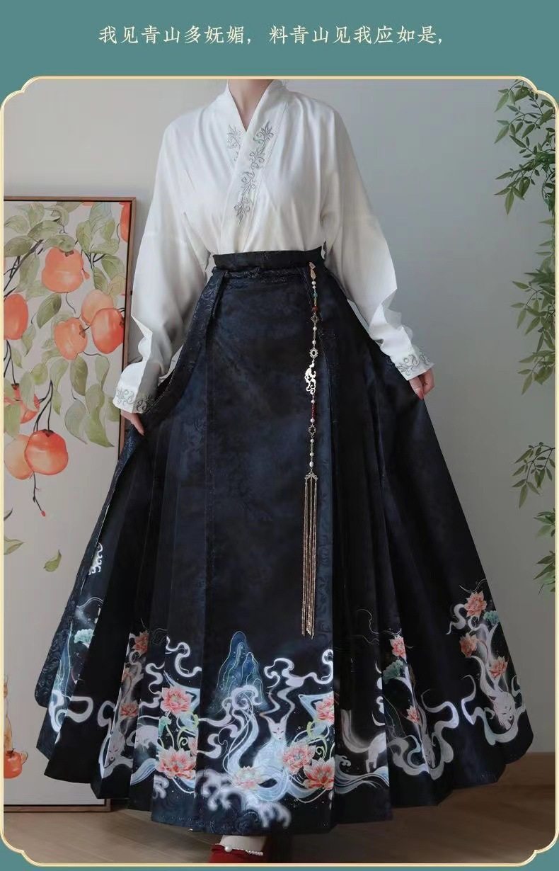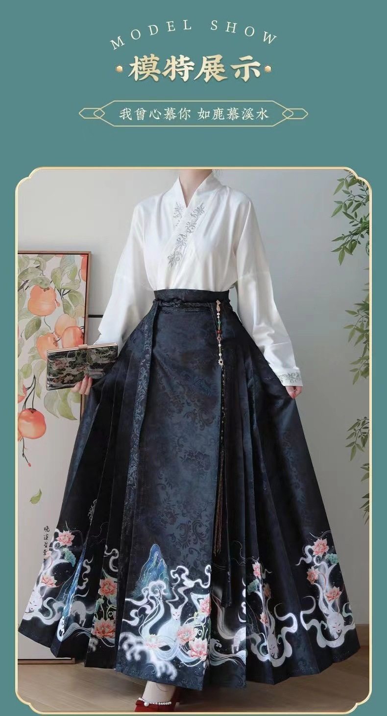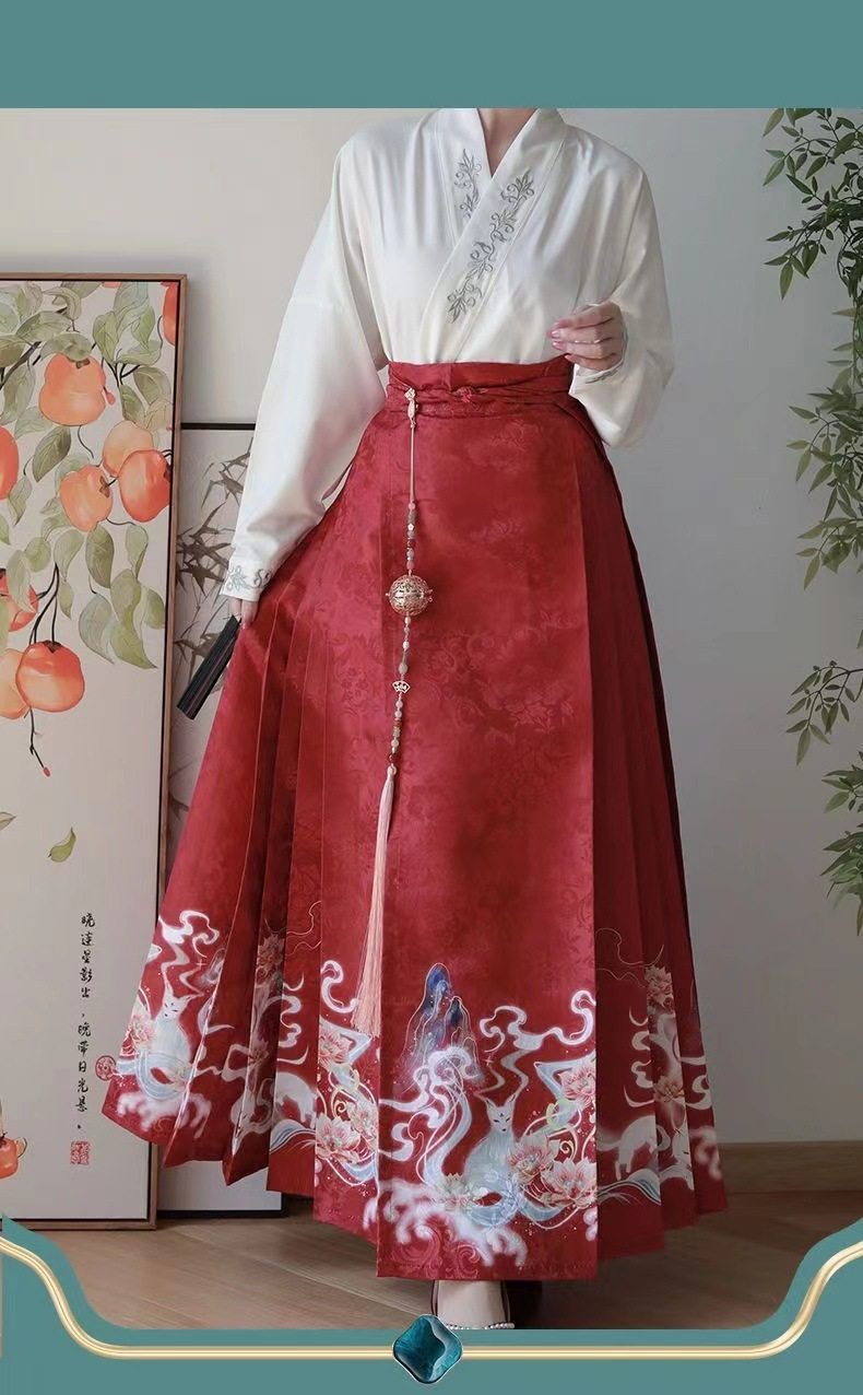 2023 Hanfu Pleated Skirt for Adults, Modified Mamian Skirt, National Style Half Skirt Women's Set, New Chinese Style National Trend