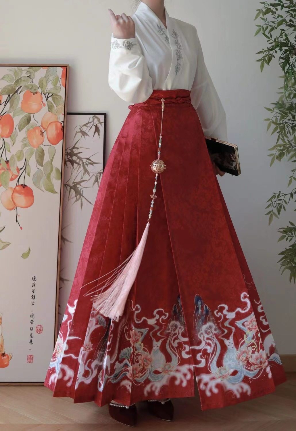 | Color | Red horse-faced skirt with cross-collar top,navy blue horse-faced skirt cross-collar top,Black Horse-Neck Top,Red horse-faced skirt,navy blue horse-faced skirt,Black horse-faced skirt,Hand-Collar Top |
