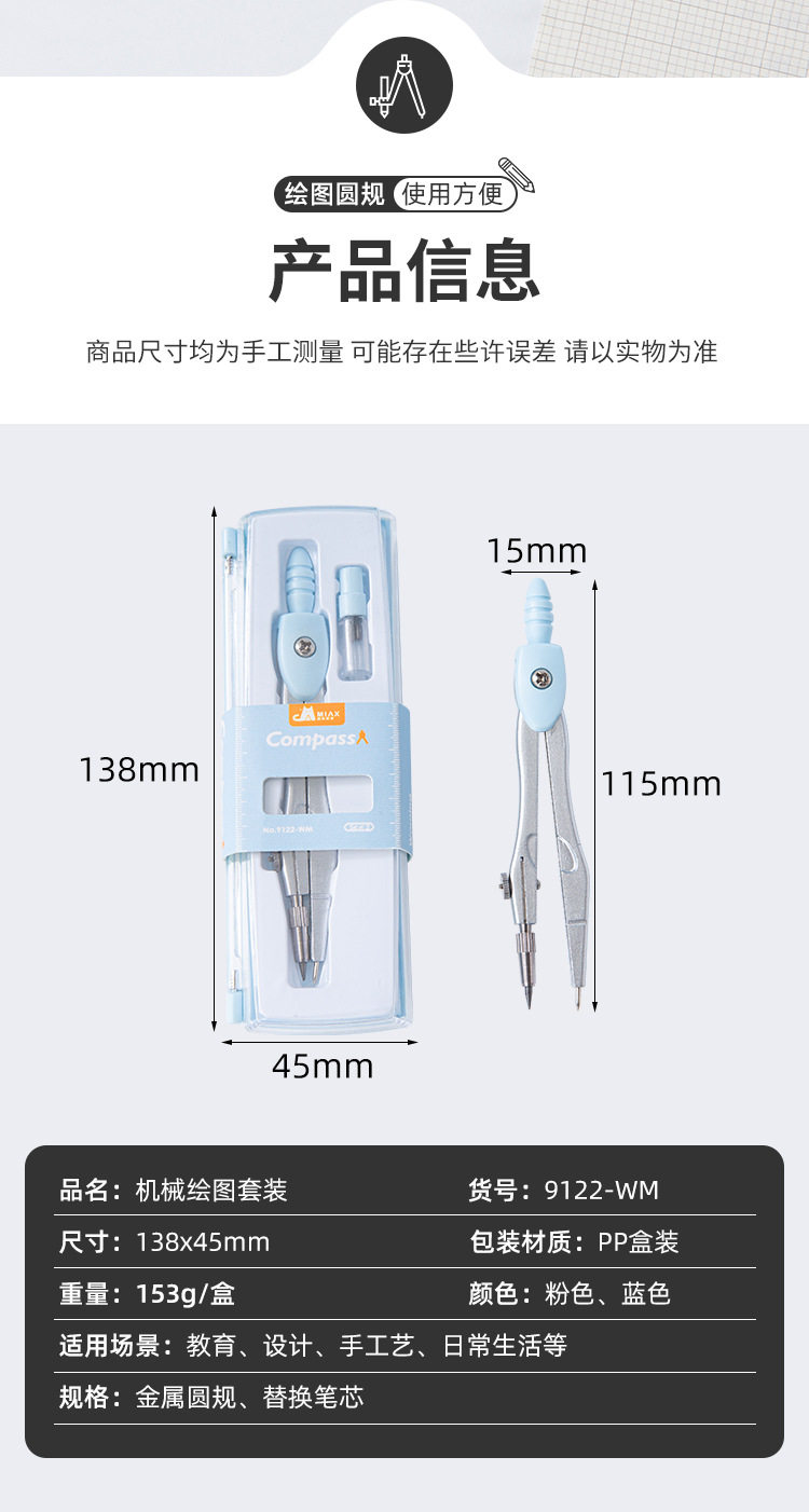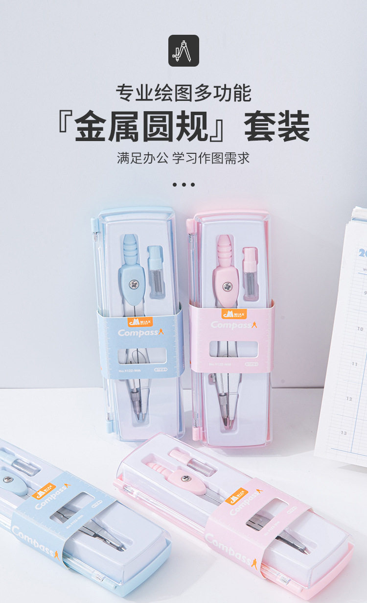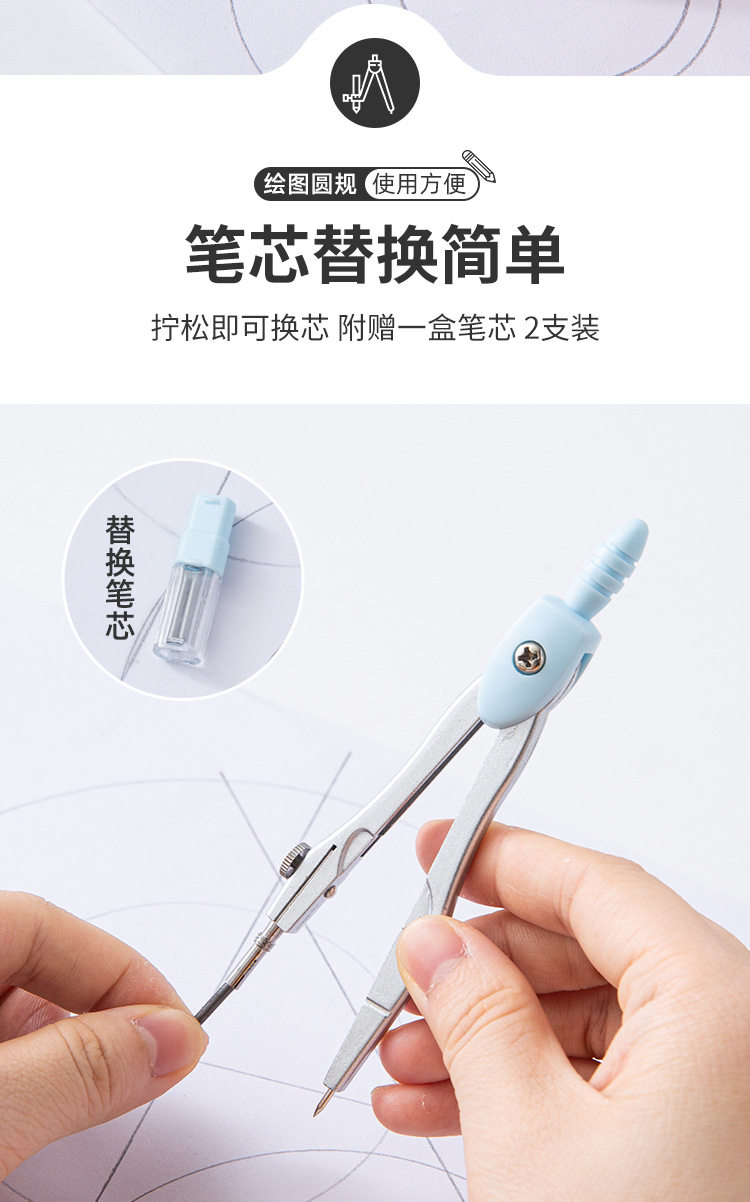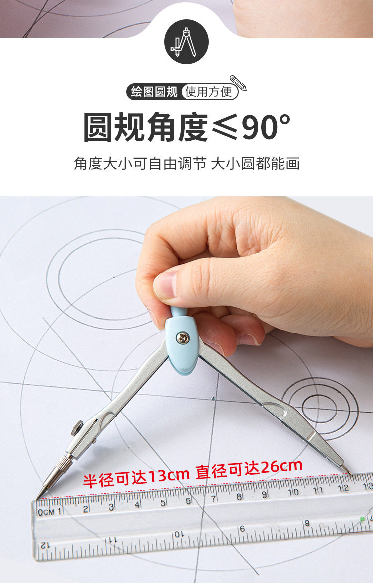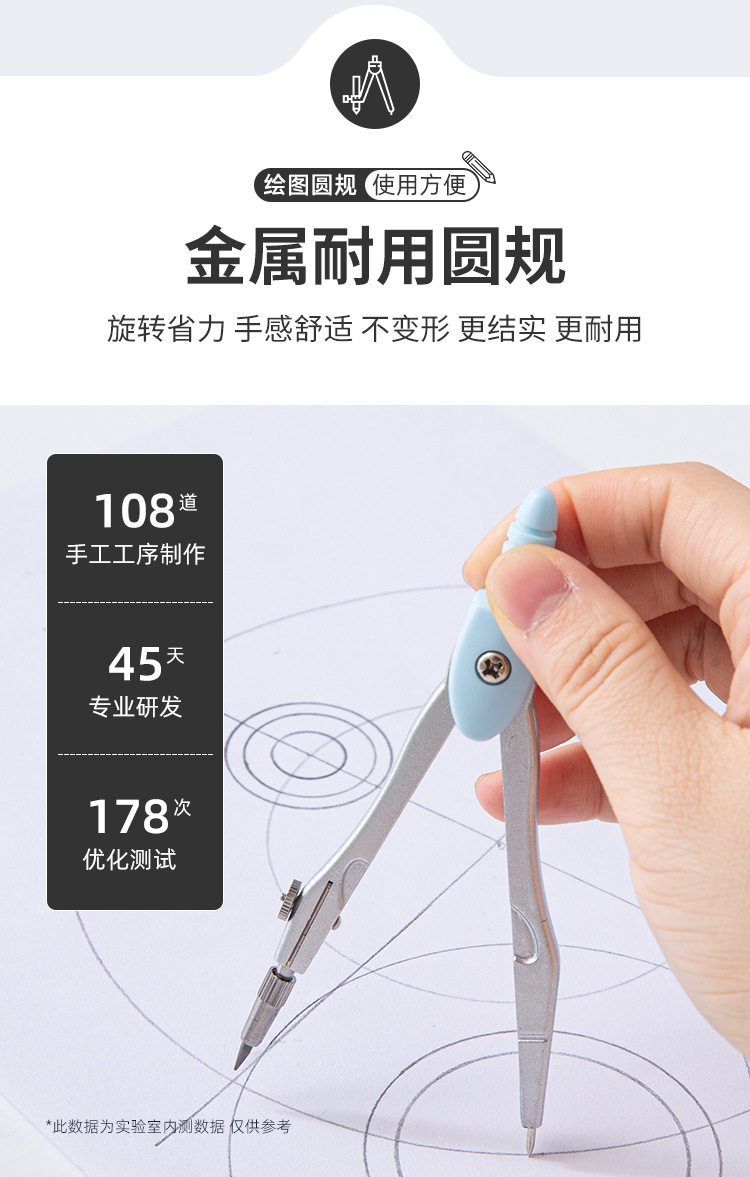 Student professional metal compasses two-piece multi-function measurement drawing suit geometry drawing tool manufacturers wholesale