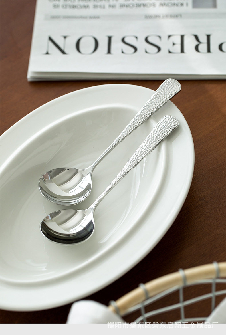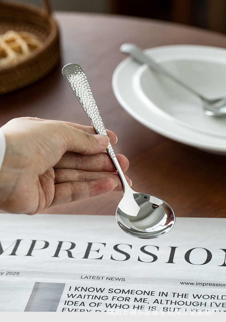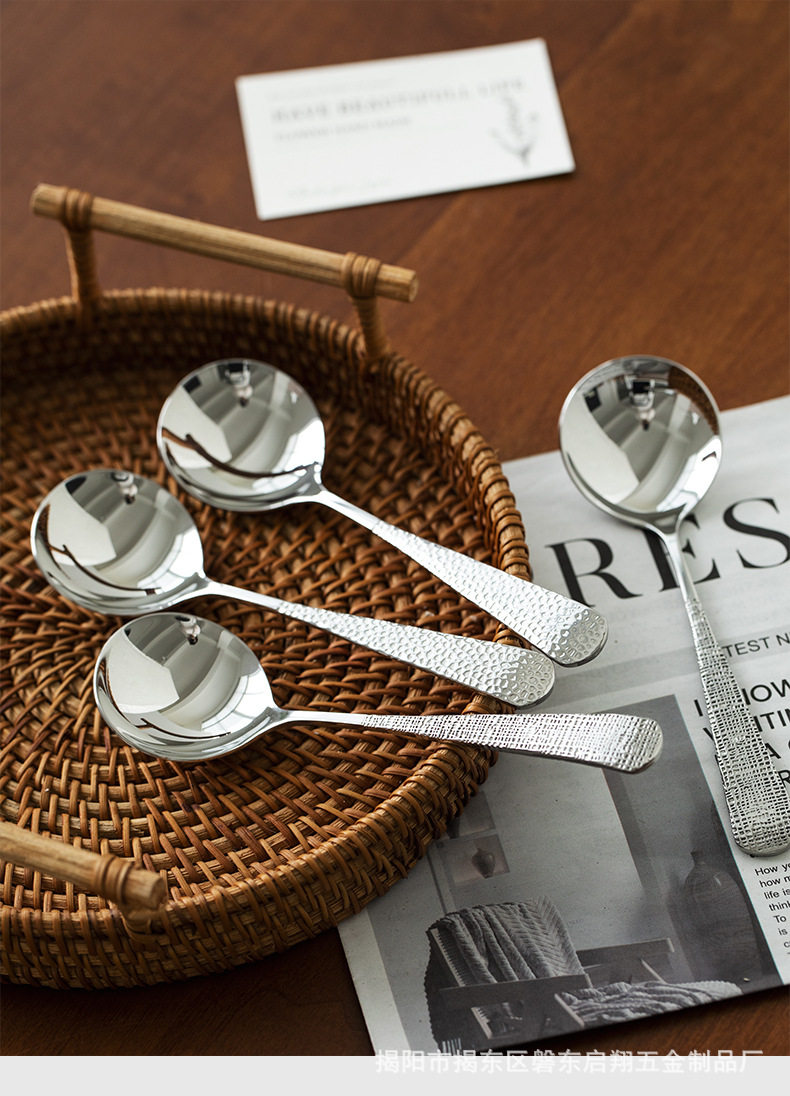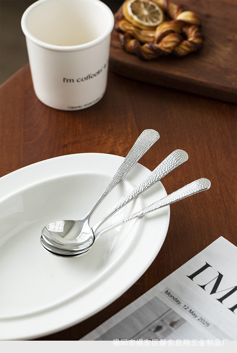 304 Stainless Steel Spoon Round Spoon Popular Boutique Spoon Creative Hammered Spoon Cloth Pattern Spoon Spoon Tableware Wholesale