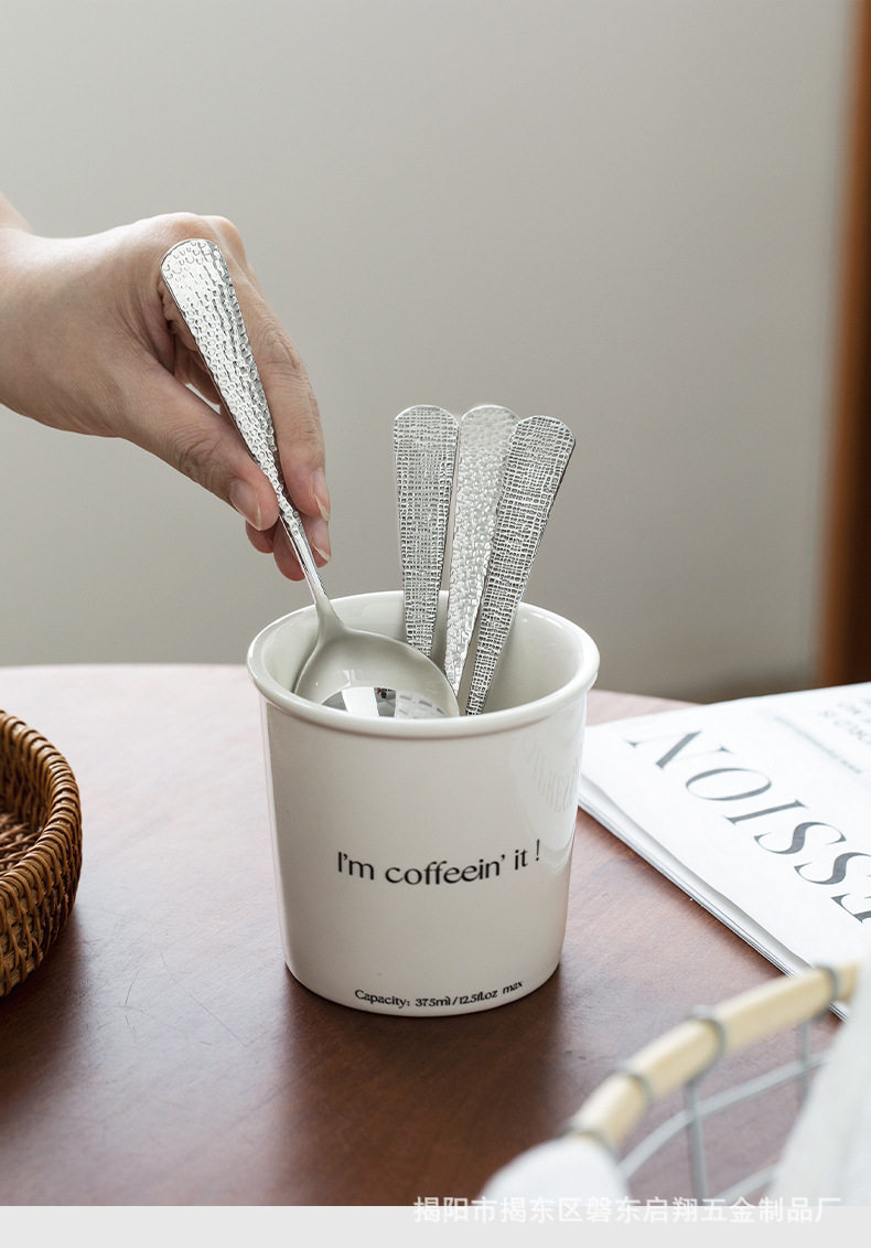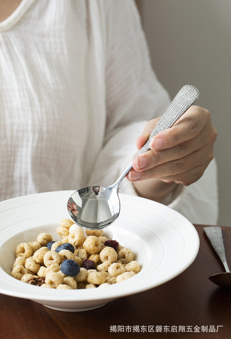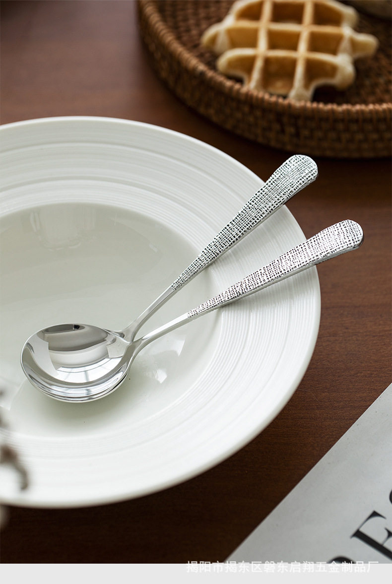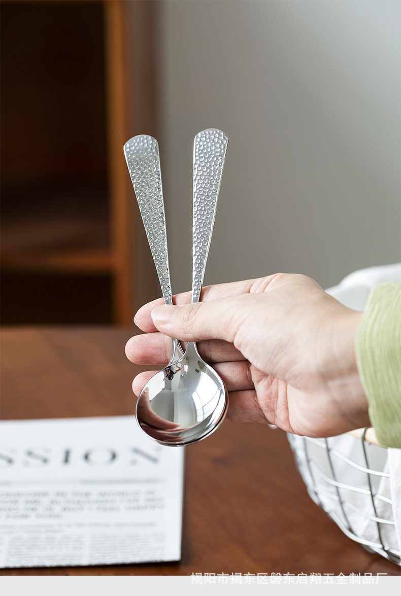 304 Stainless Steel Spoon Round Spoon Popular Boutique Spoon Creative Hammered Spoon Cloth Pattern Spoon Spoon Tableware Wholesale