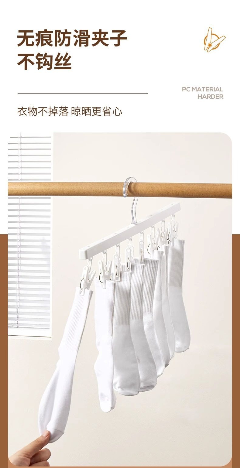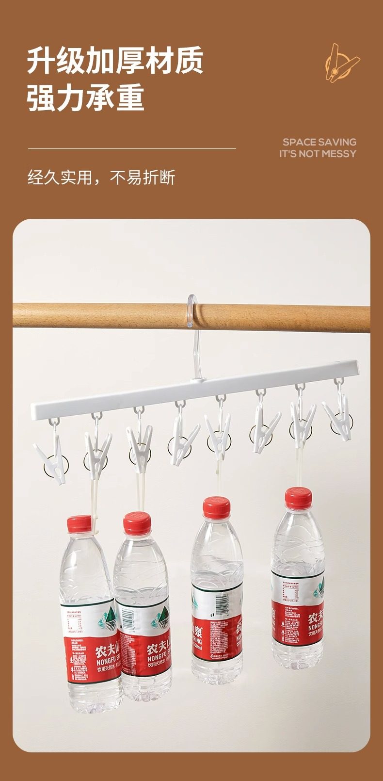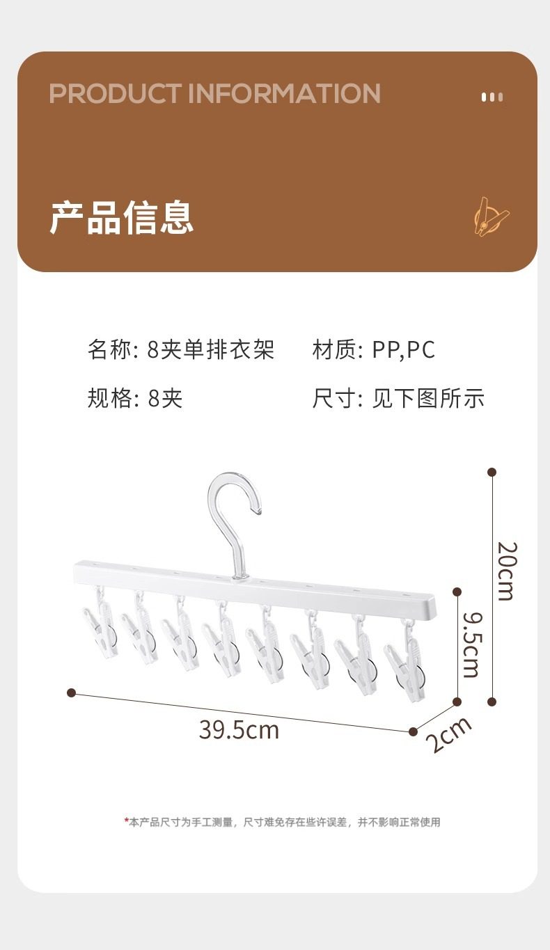 Multi-head Two-color Windproof Clip Kidsren's Clothes Drying Rack Home Balcony 8-clip Drying Rack Intimates and Socks Plastic Straight Rod