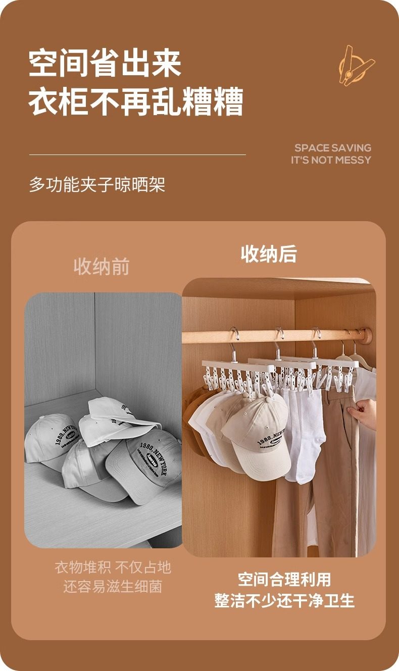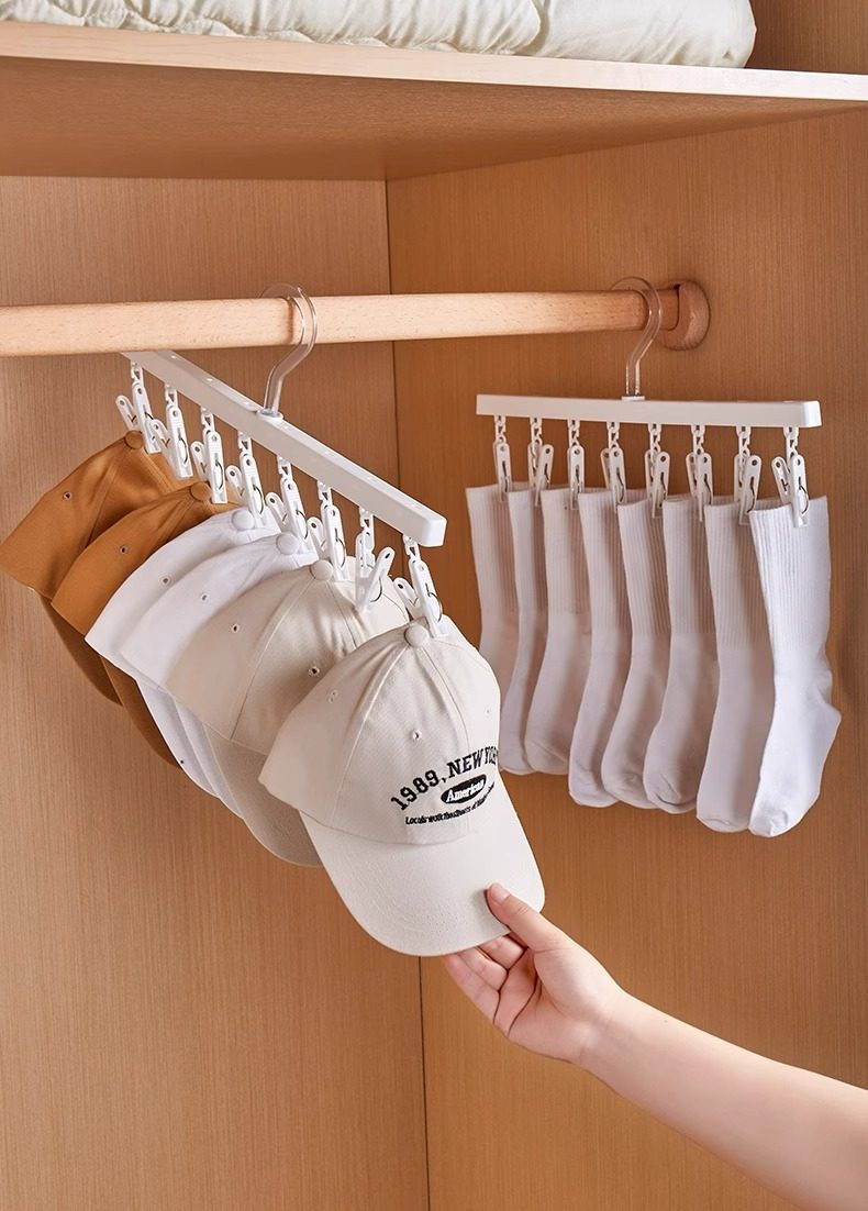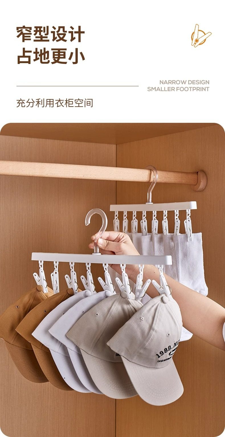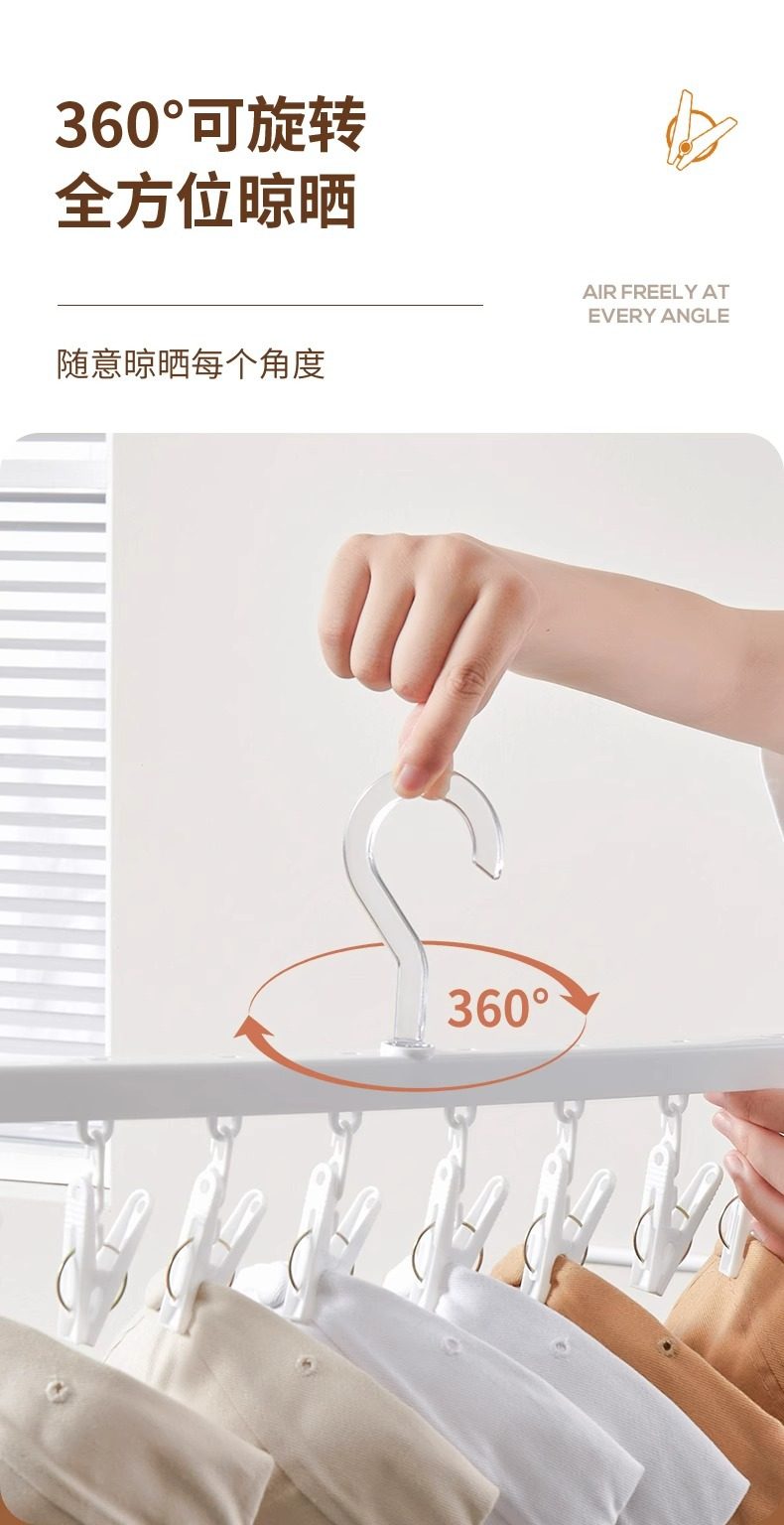 Multi-head Two-color Windproof Clip Kidsren's Clothes Drying Rack Home Balcony 8-clip Drying Rack Intimates and Socks Plastic Straight Rod