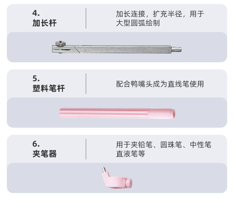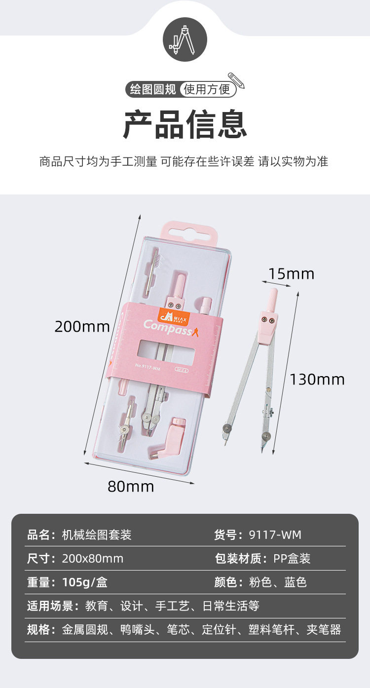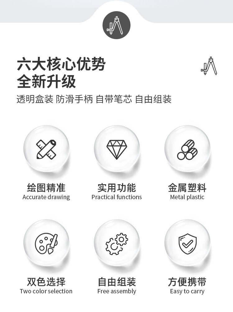 Student-specific compasses assemble six-piece metal drawing design student examination standard drawing tool compasses