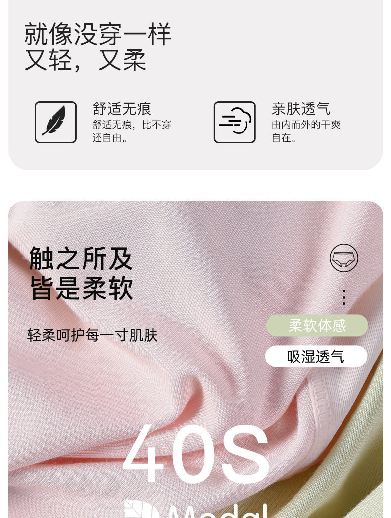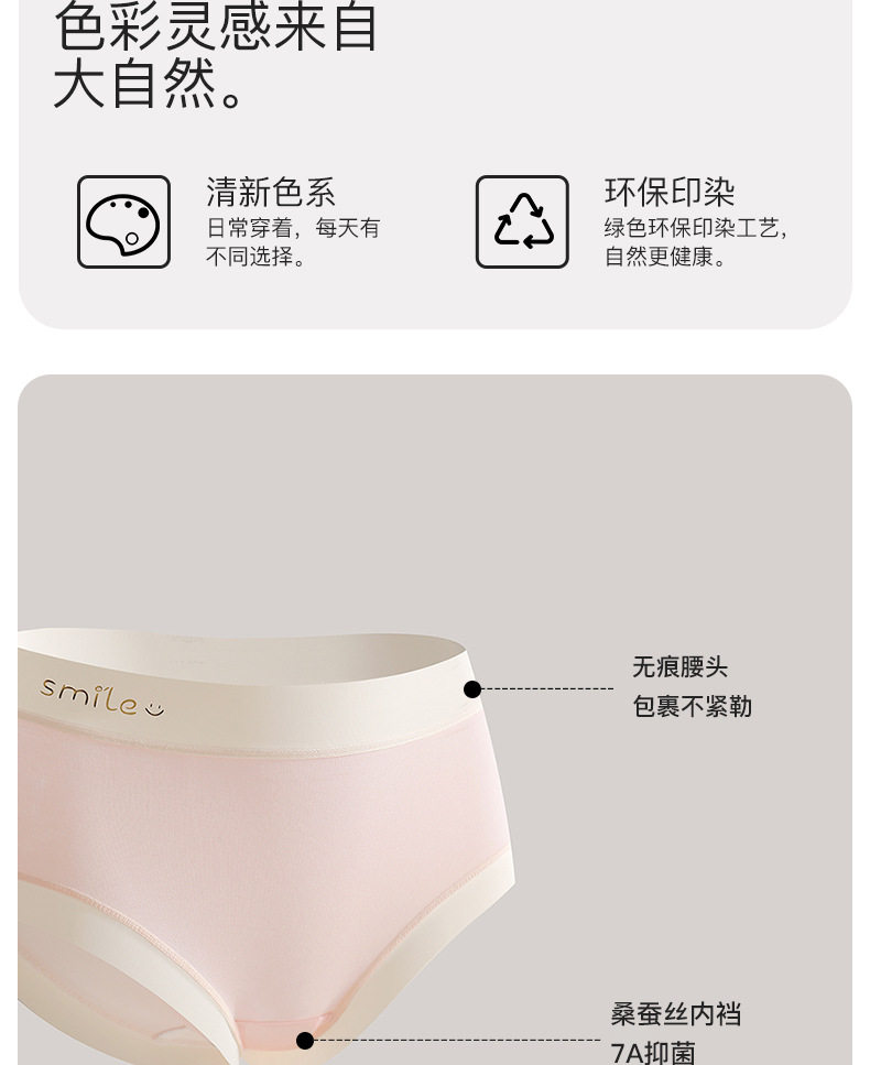 Modal Underwear Women's Summer Mulberry Silk Bacteriostatic Crotch Mid-waist Breathable Women's Underwear Seamless Non-clip Hip Briefs Women