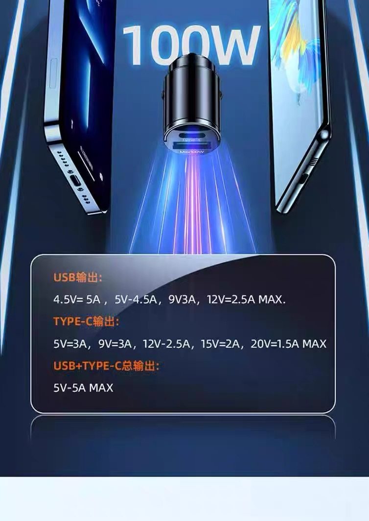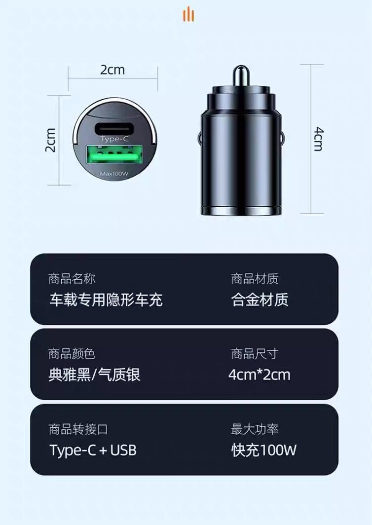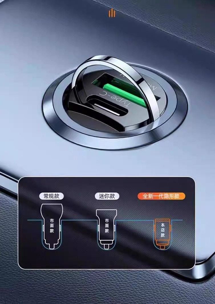 Net red with car charger fast charging mobile phone mini invisible small cigarette lighter conversion USB-Typec