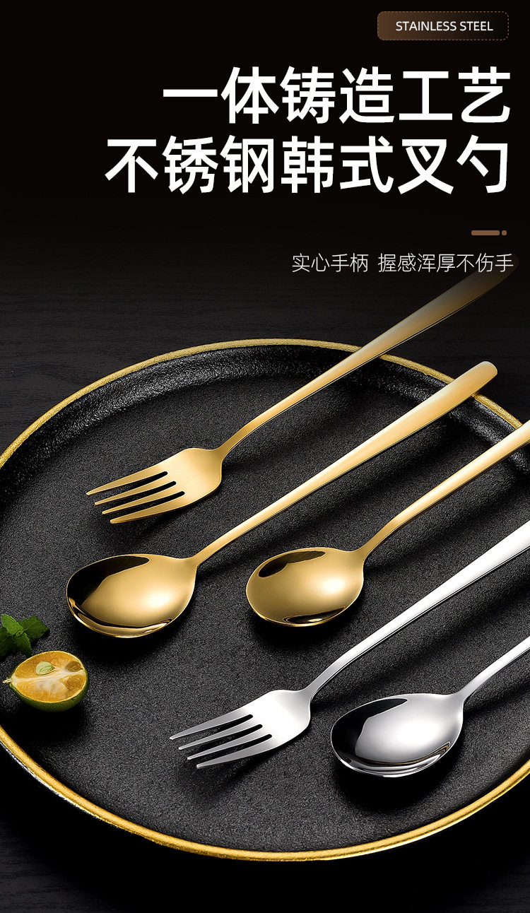 Korean Spoon 304 Stainless Steel Spoon Fork Thickeneded Long Handle Household Eating and Drinking Soup Gift Spoon Can Laser LOGO