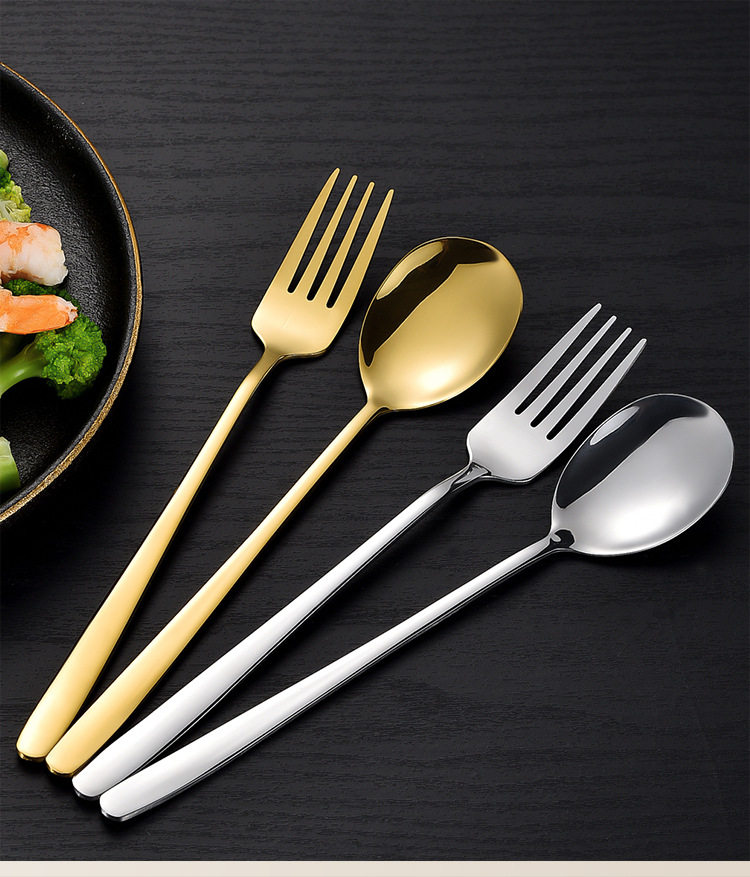 | Color | Silver spoon (304 stainless steel),Silver large fork (304 stainless steel),Silver spoon (410 stainless steel),Silver large fork (410 stainless steel),Silver no. 2 spoon (410 stainless steel),Silver no. 2 fork (410 stainless steel),Silver no. 3 spoon (410 stainless steel),Golden spoon (304 stainless steel),Golden large fork (304 stainless steel),Golden spoon (410 stainless steel),Golden large fork (410 stainless steel),Golden no. 2 spoon (410 stainless steel),Golden no. 2 fork (410 stainless steel),Golden no. 3 spoon (410 stainless steel) |