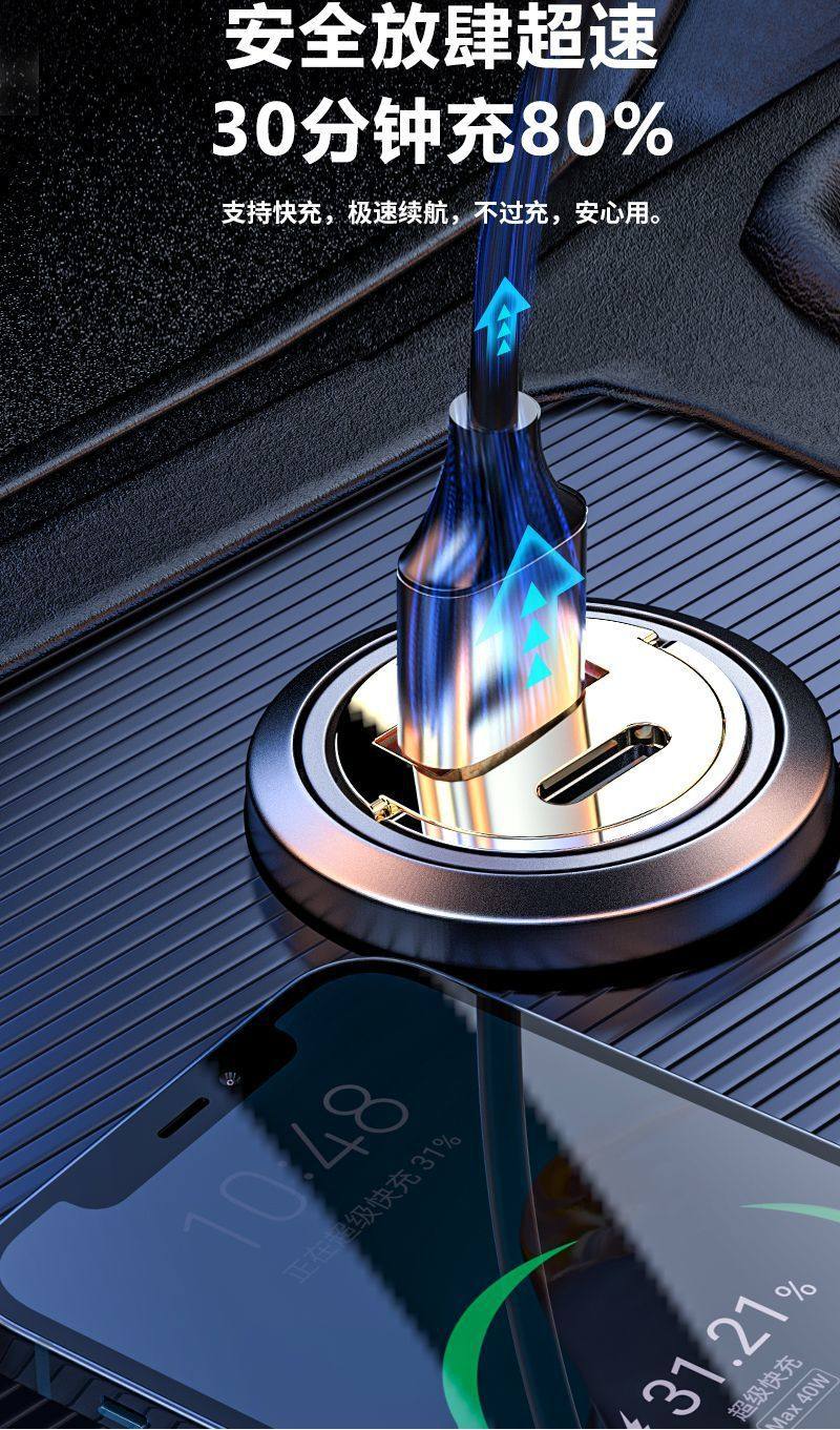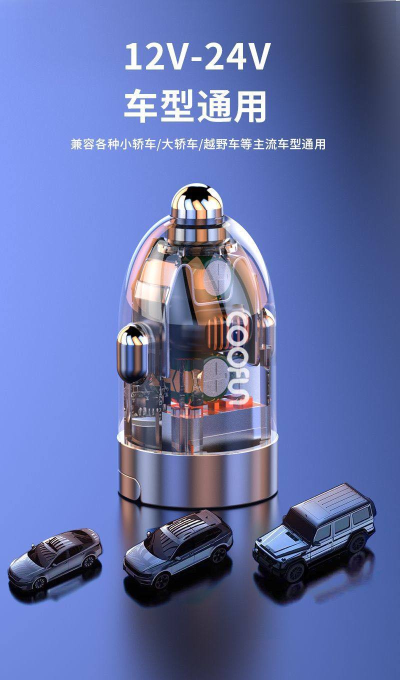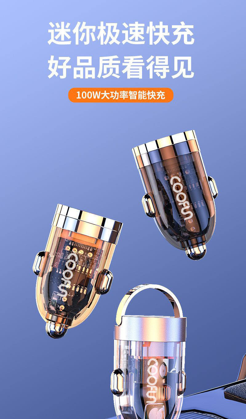 Longqi Car Mobile Phone Charger 100W Super Fast Charging Pd35W Apple 15 New Tpc Transparent Cigarette Lighter