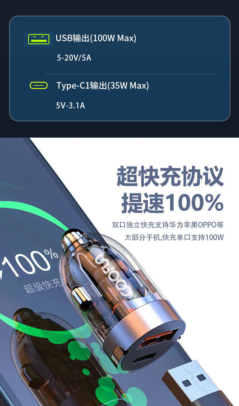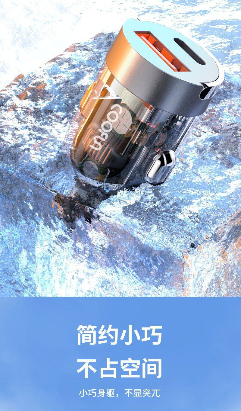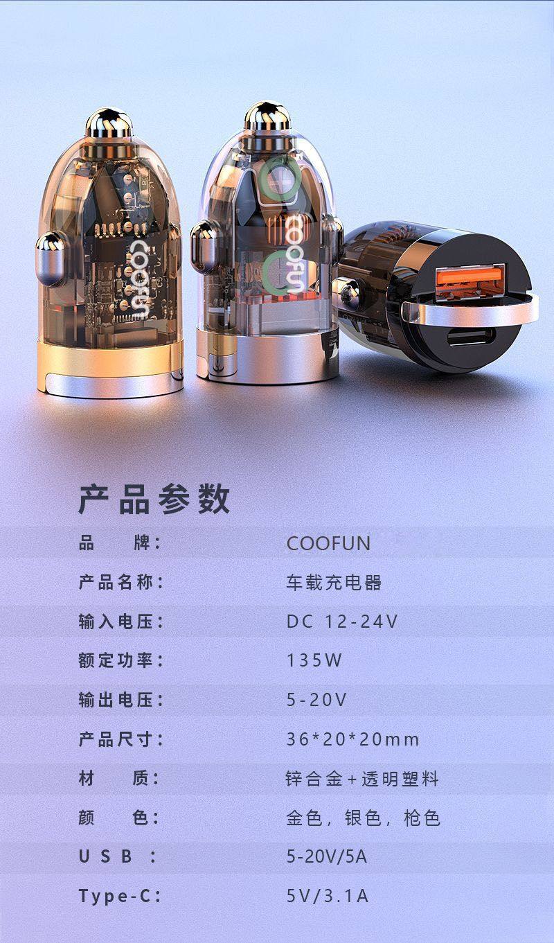 Longqi Car Mobile Phone Charger 100W Super Fast Charging Pd35W Apple 15 New Tpc Transparent Cigarette Lighter