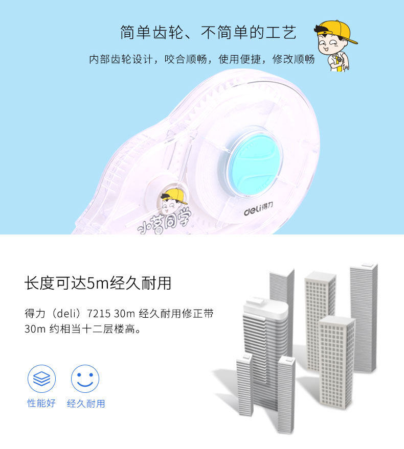 Deli Card Large Capacity Correction Tape 20m30m Commercial Super Pack Affordable Economical Durable Anti-dry and Dust-proof