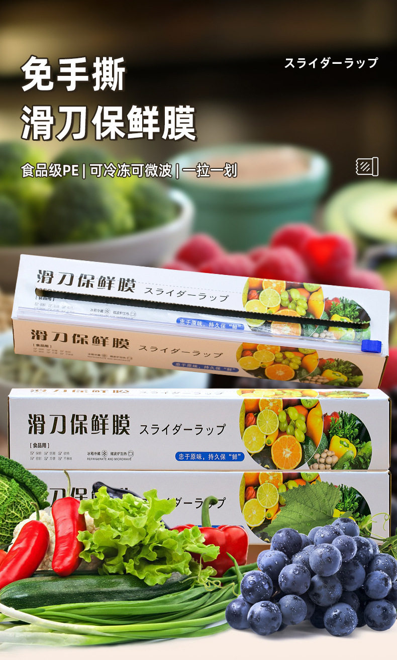Disposable sliding knife type plastic wrap food grade dustproof PE transparent household kitchen food plastic wrap wholesale
