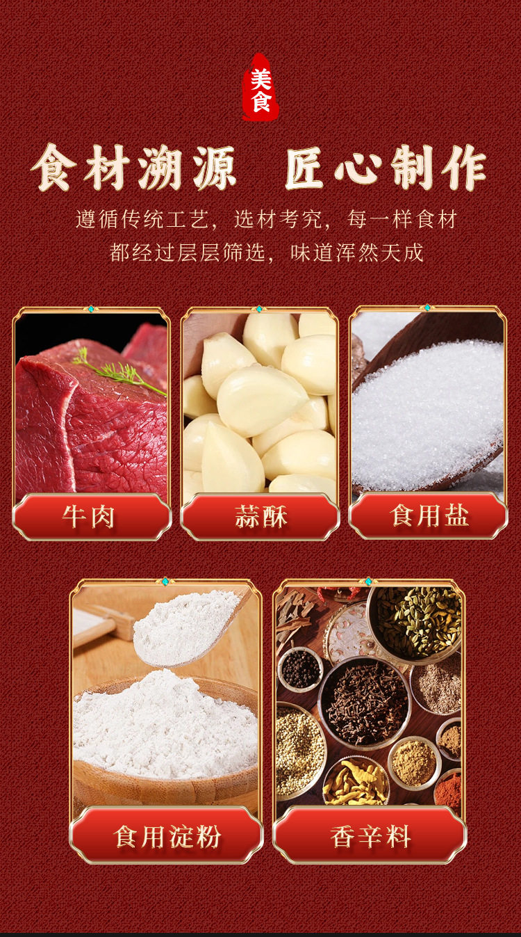 | Raw materials and ingredients | Beef, drinking water, edible starch, edible salt, |