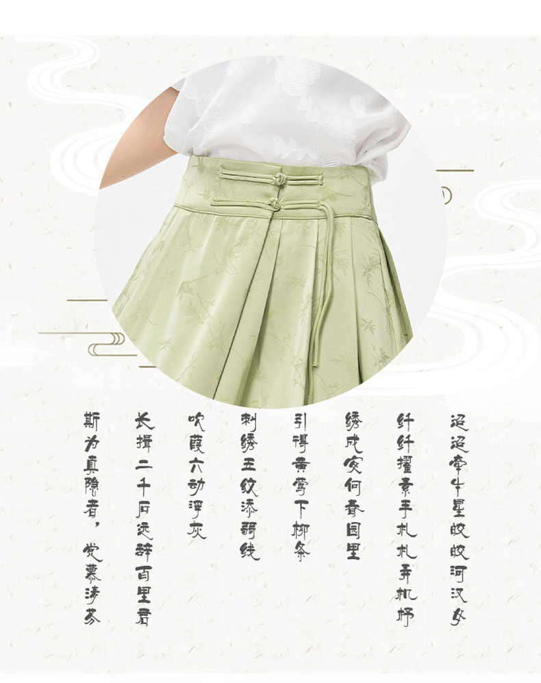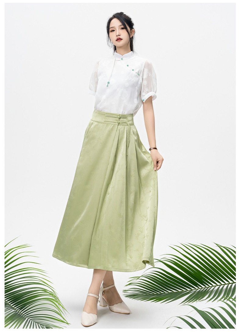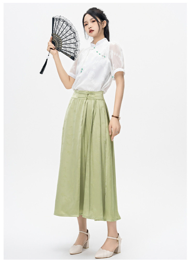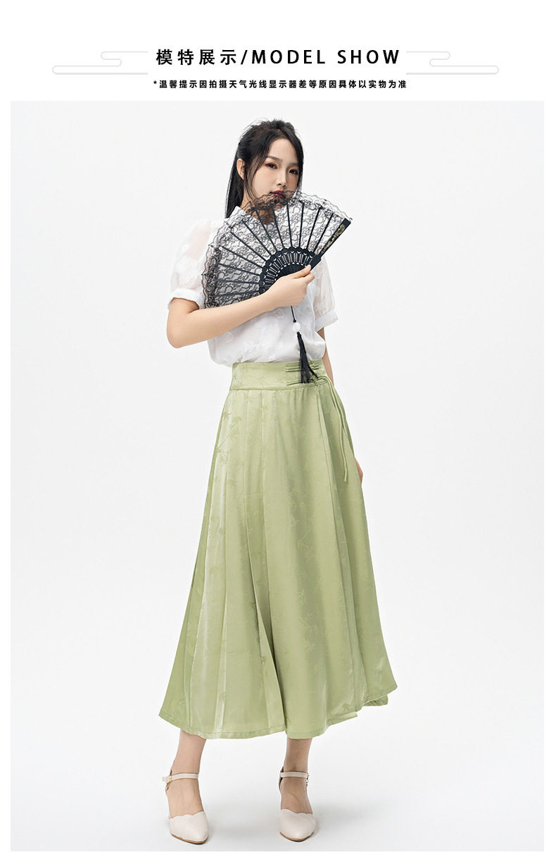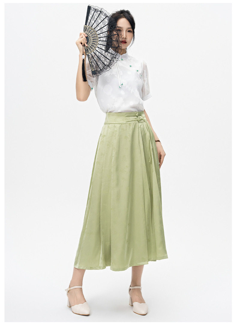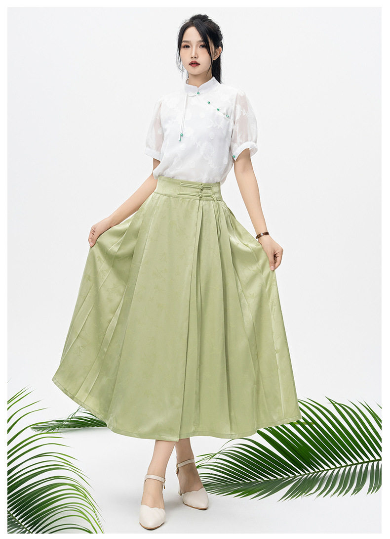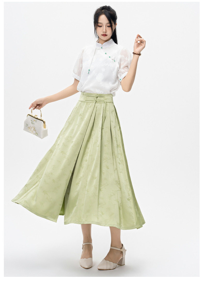 | Color | Green horse-faced skirt |