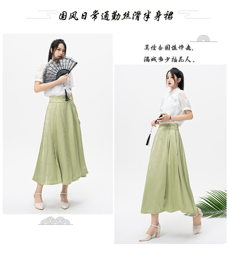 light green Horse Face Skirt Summer 2025 New Slimming National Style Skirt Women's High-end Simple A- line Long Skirt