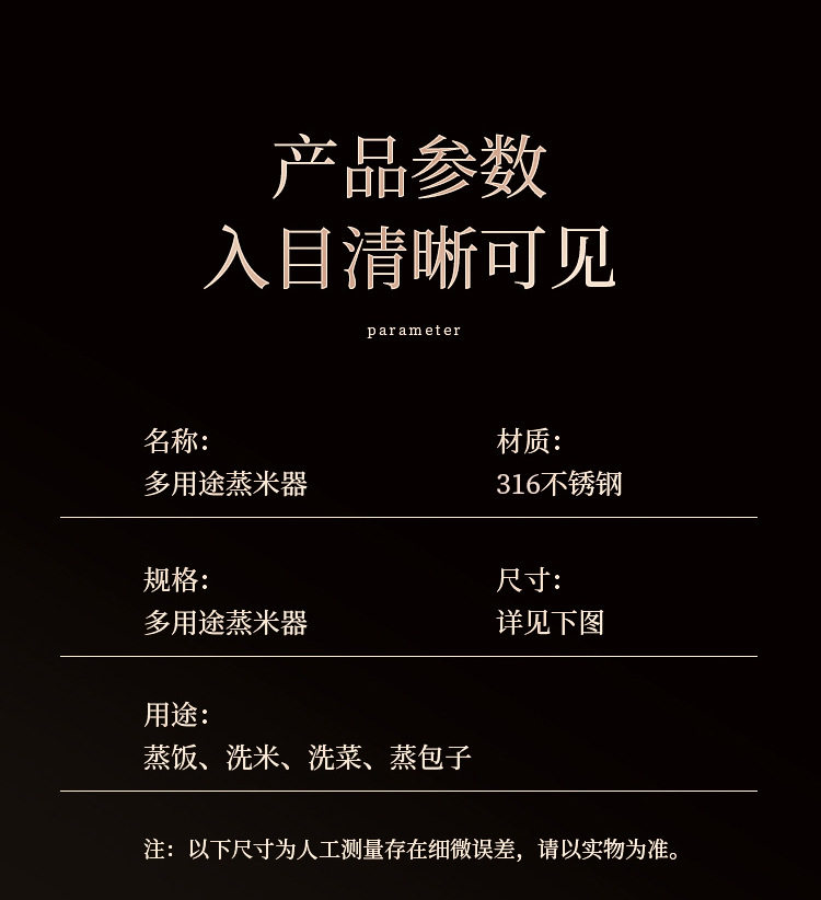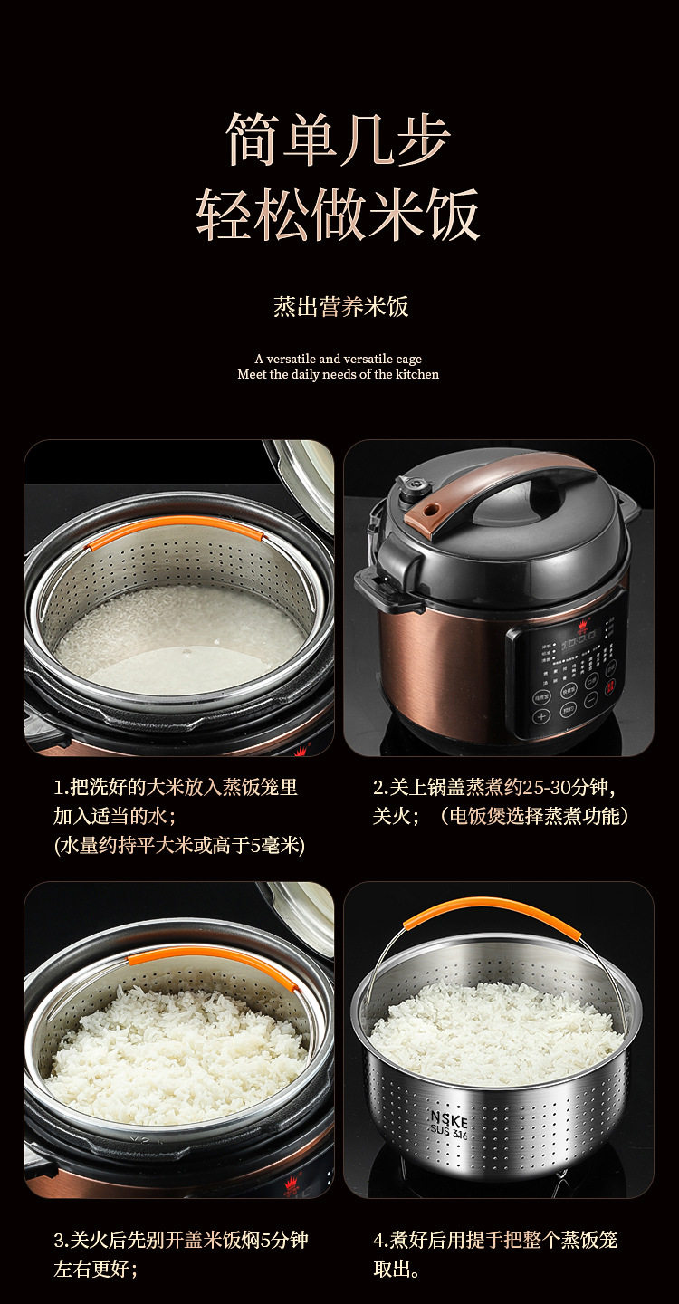 | Specifications | 1.2l rice steamer (suitable for 1 person) 304 stainless steel,1.5l rice steamer (suitable for 2 people) 304 stainless steel,2.0l rice steamer (suitable for 1-3 people) 304 stainless steel,3.0l rice steamer (suitable for 1-4 people) 304 stainless steel,4.0l rice steamer (suitable for 1-5 people) 304 stainless steel,6.0l rice steamer (suitable for 1-7 people) 304 stainless steel,8.0l rice steamer (suitable for 1-8 people) 304 stainless steel |
