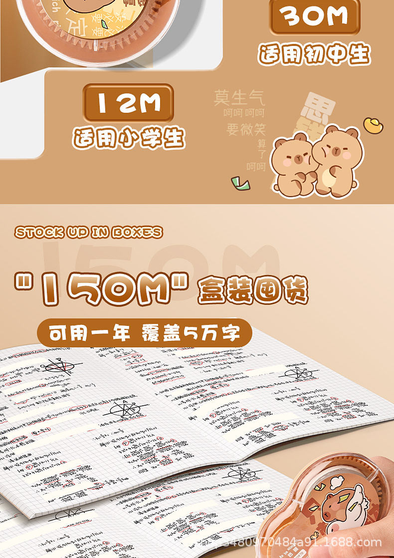 Ka Ba Xiong Large Capacity Correction Tape suit Junior High School Students' Wrong Topic Modification suit 72m150m Cartoon High Color Value