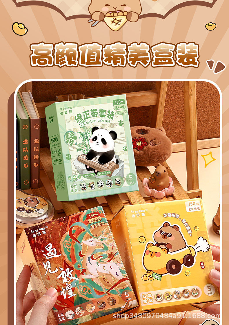 | Specifications | Large Capacity 72 m Correction Tape-National Elegant Song,Large capacity 72 m correction tape-panda infested,Large Capacity 72 m Correction Tape-Kabibala,Large Capacity 150 m Correction Tape-Dream into Dunhuang,Large capacity 150 m correction tape-panda infested |