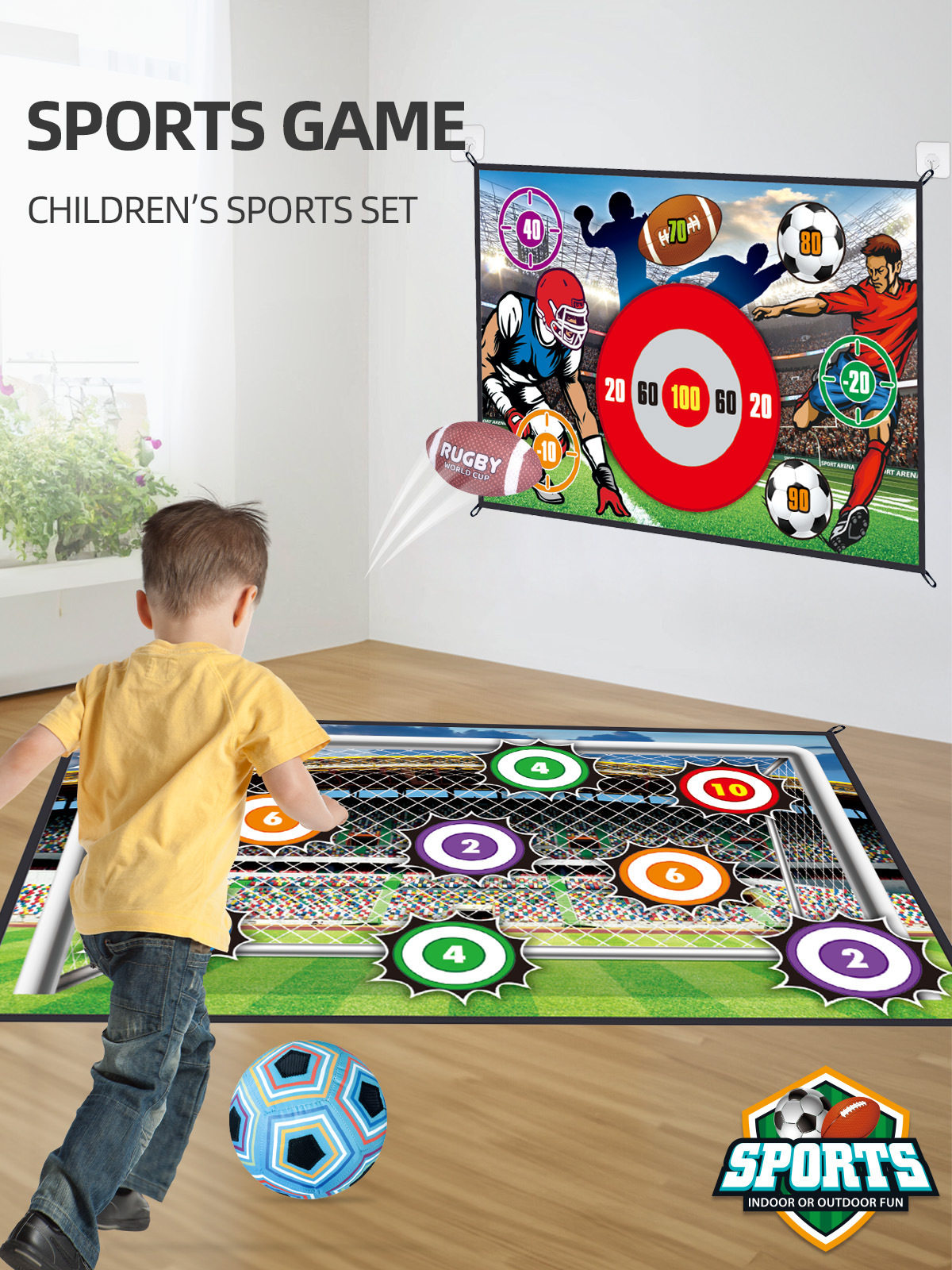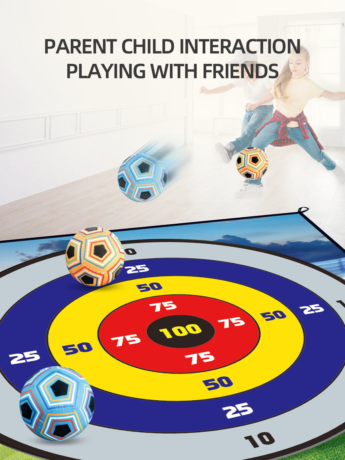 〖Border Amazon] Children's Football Indoor Backyard Throwing Target Game Mat Velcro Ball Set