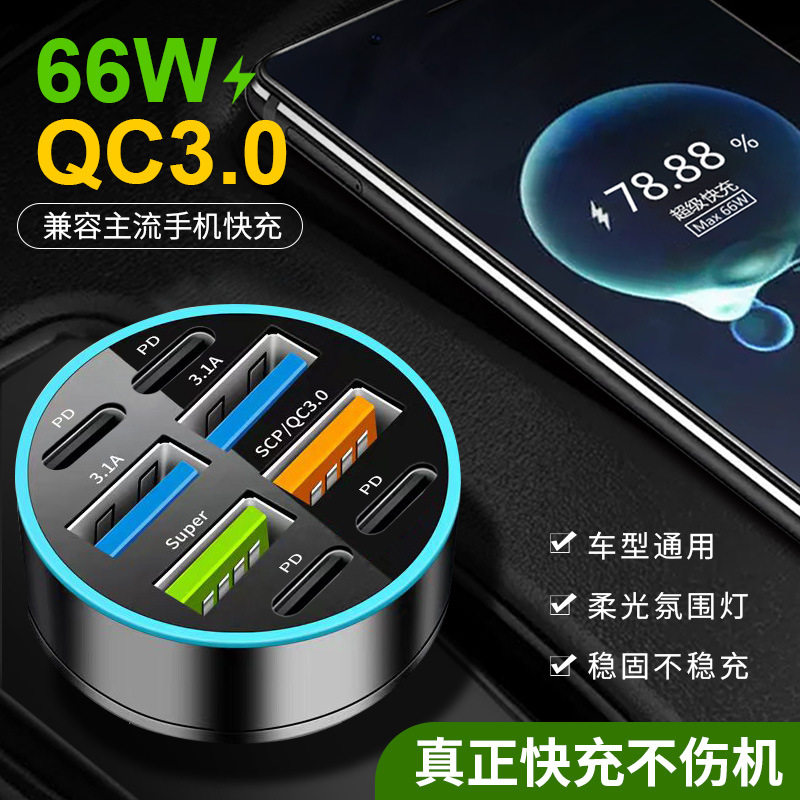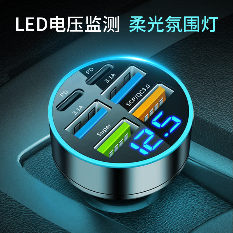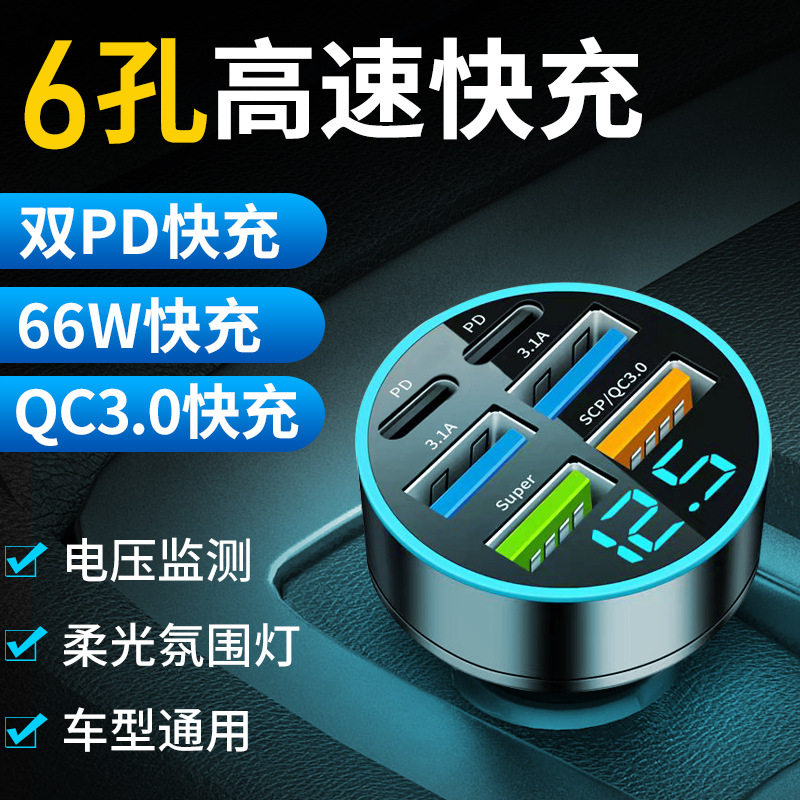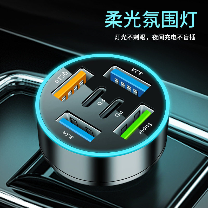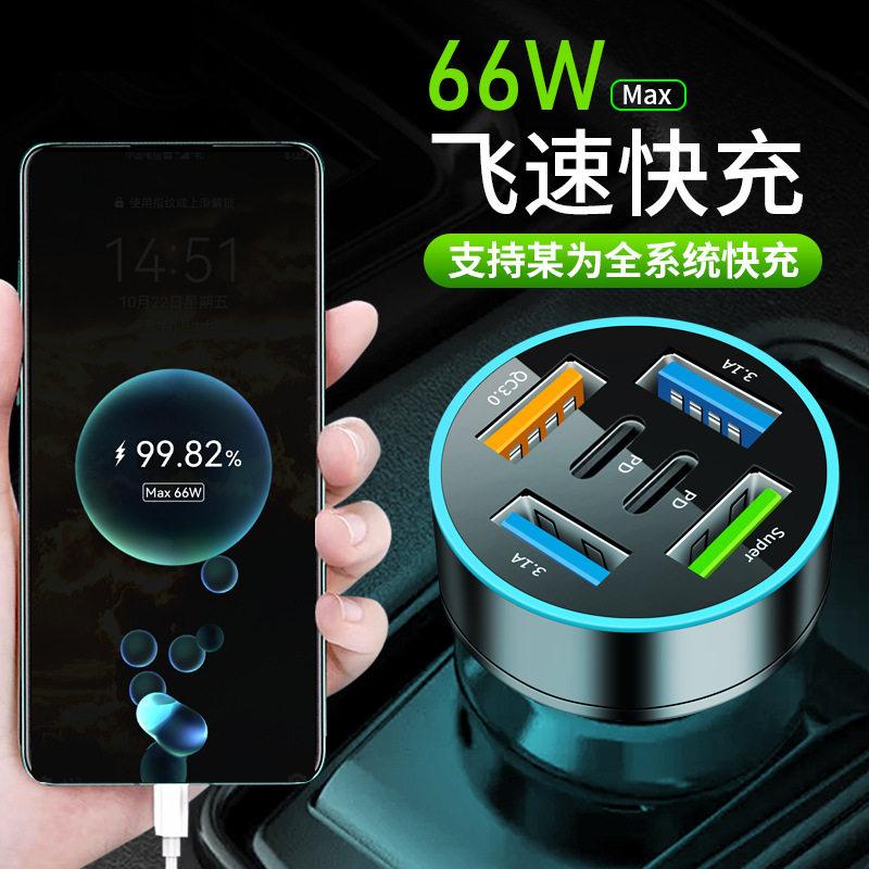Digital Display Car Charger Fast Charging 5Usb66Wpd Mobile Phone Charging Head Car One to Four Halo Charger High Power