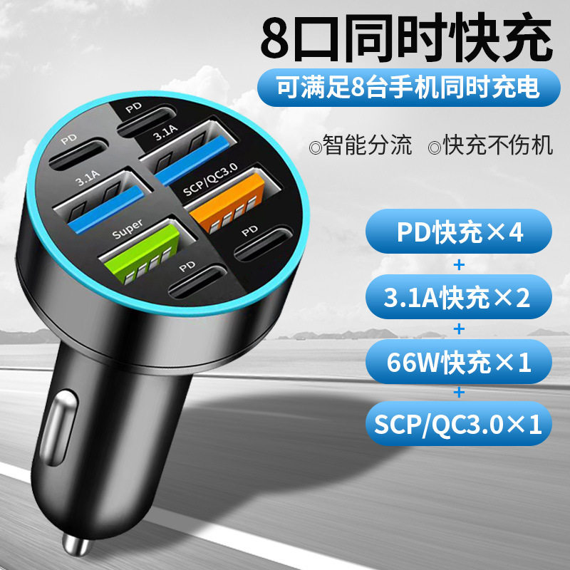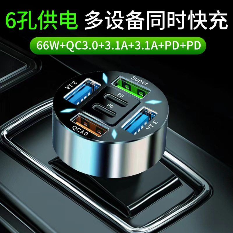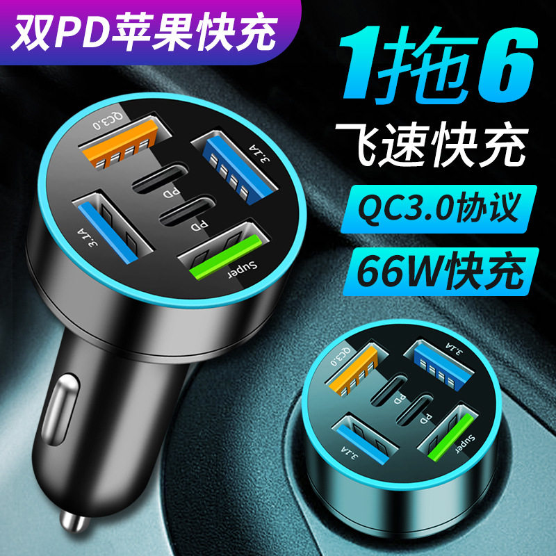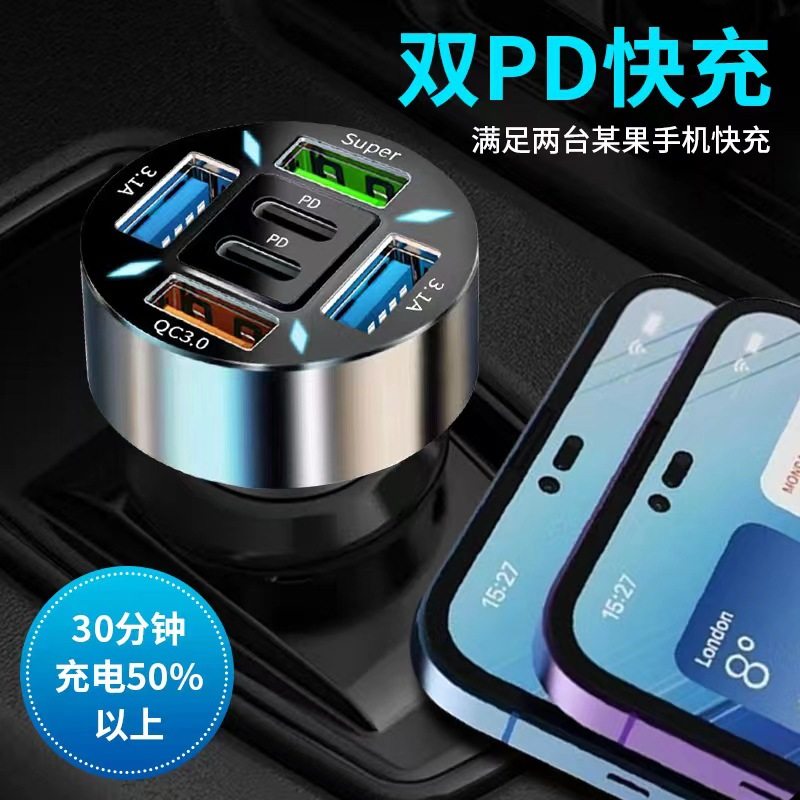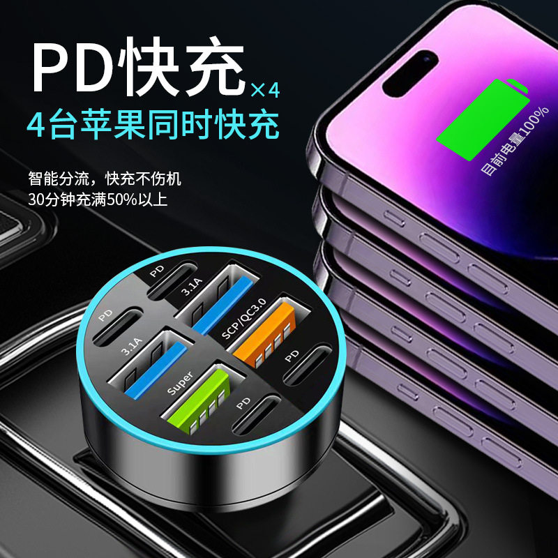Digital Display Car Charger Fast Charging 5Usb66Wpd Mobile Phone Charging Head Car One to Four Halo Charger High Power