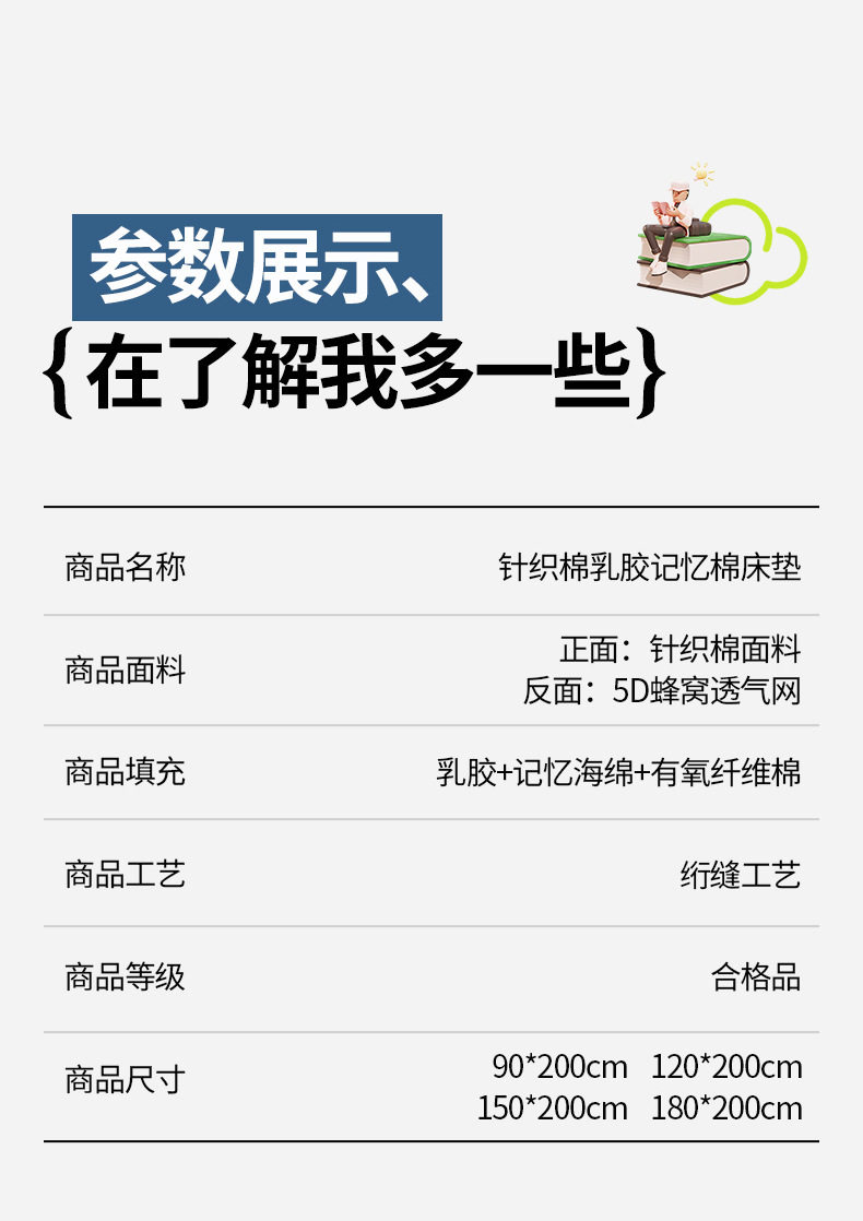 | Dimensions | 80*190cm [class a latex layer + memory foam + fiber cotton],90*190cm [class a latex layer + memory foam + fiber cotton],90*200cm [class a latex layer + memory foam + fiber cotton],100*200cm [class a latex layer + memory foam + fiber cotton],120*190cm [class a latex layer + memory foam + fiber cotton],120*200cm [class a latex layer + memory foam + fiber cotton],150*190cm [class a latex layer + memory foam + fiber cotton],150*200cm [class a latex layer + memory foam + fiber cotton],180*200cm [class a latex layer + memory foam + fiber cotton] |