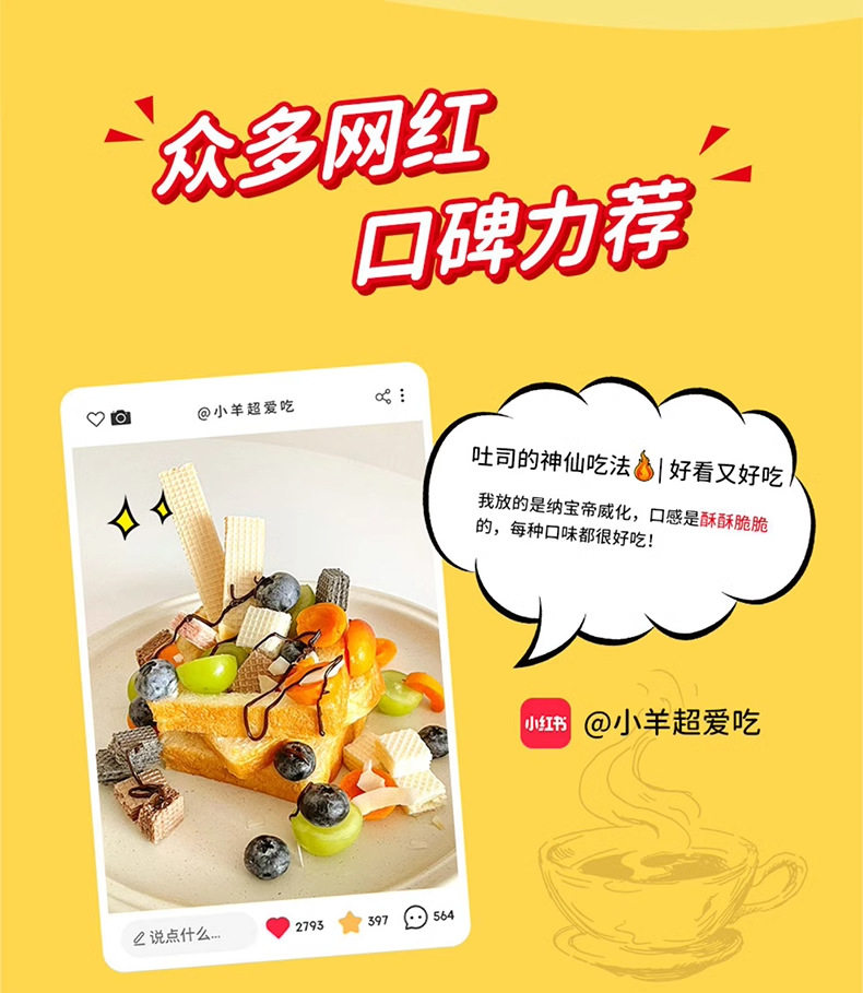 | Packaging specifications | Weified biscuits 53g (cheese flavor),Weified biscuits 53g (strawberry flavor),Weified biscuits 53g (coconut flavor),Weichuang biscuits 53g (salted egg yolk flavor) |