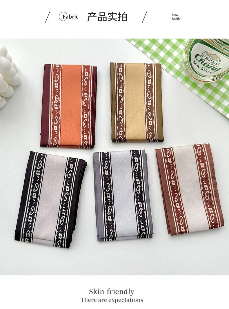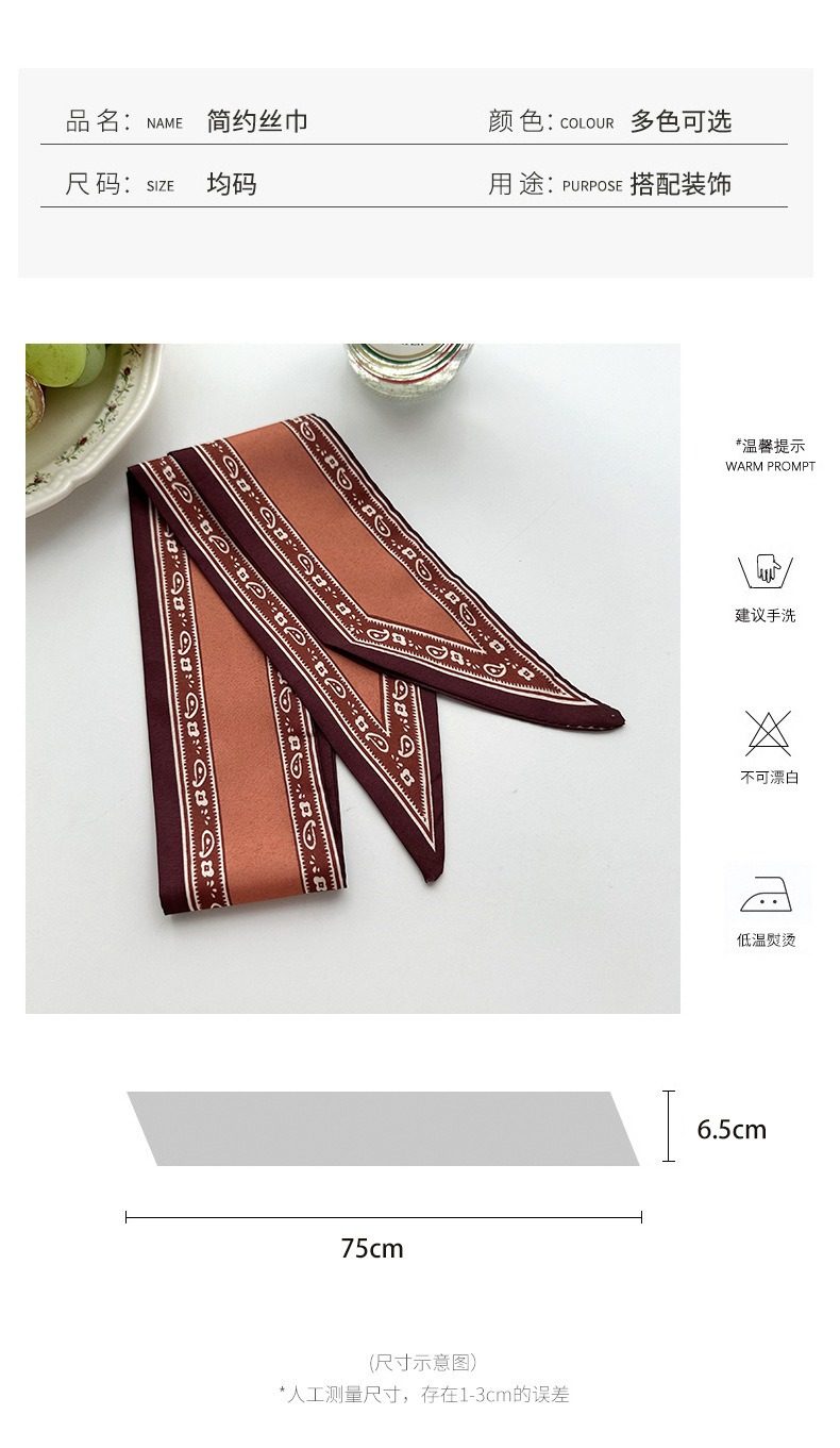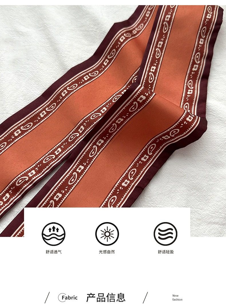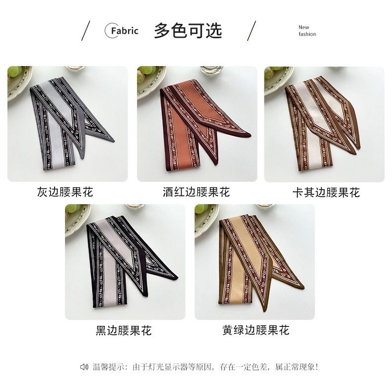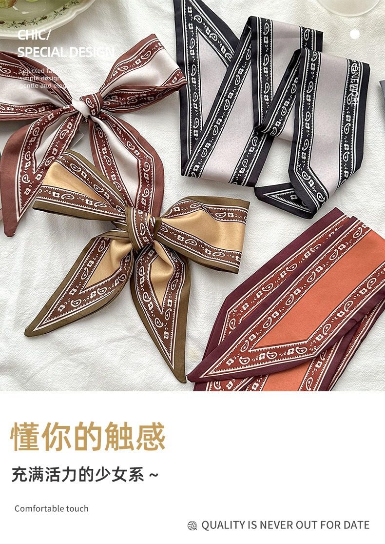 Narrow Long Small Silk Scarf 2025 Women's Spring and Summer Korean Style All-match Tie Hair Tie Bag Solid Color Cashew Flower Hair Belt Ribbon