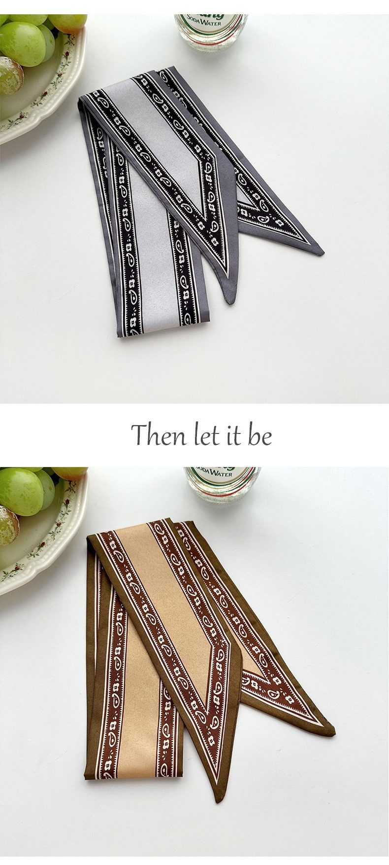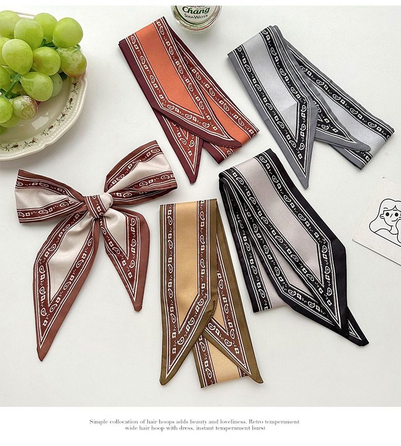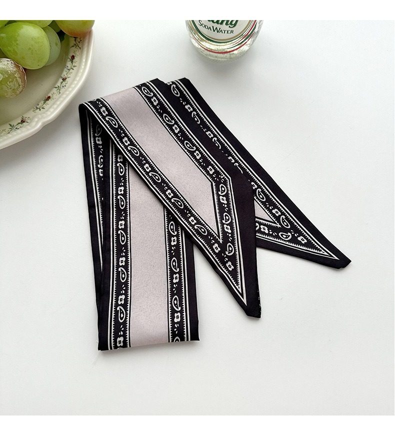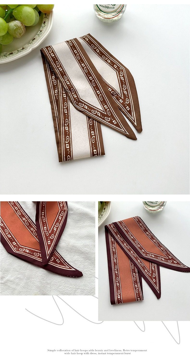 Narrow Long Small Silk Scarf 2025 Women's Spring and Summer Korean Style All-match Tie Hair Tie Bag Solid Color Cashew Flower Hair Belt Ribbon