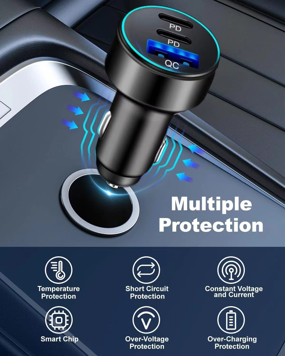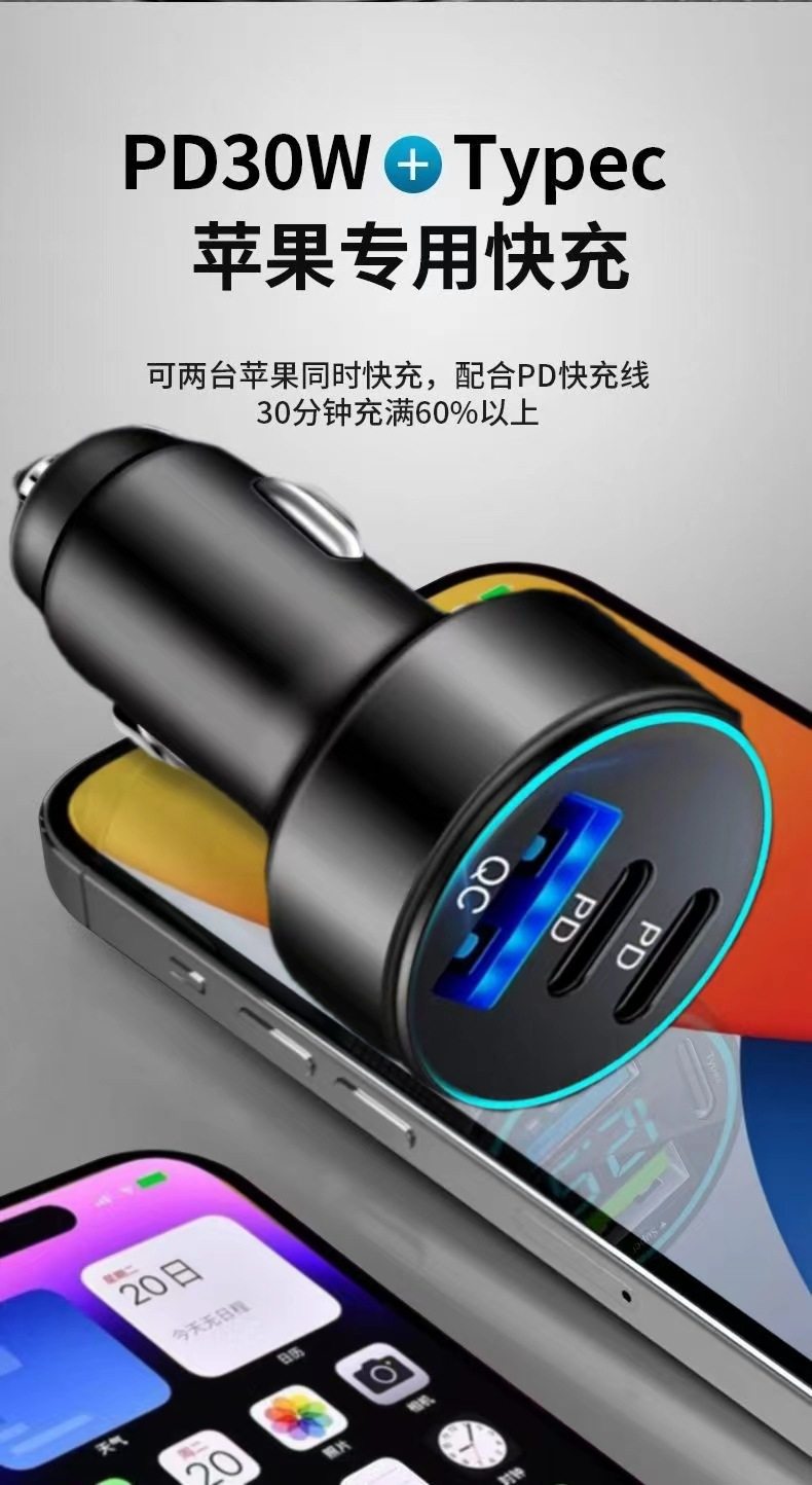 Cross-Border 2C1A Car Charger Suitable for Apple 15 16 Super Fast Charging One to Three Car Charger Manufacturer 78W